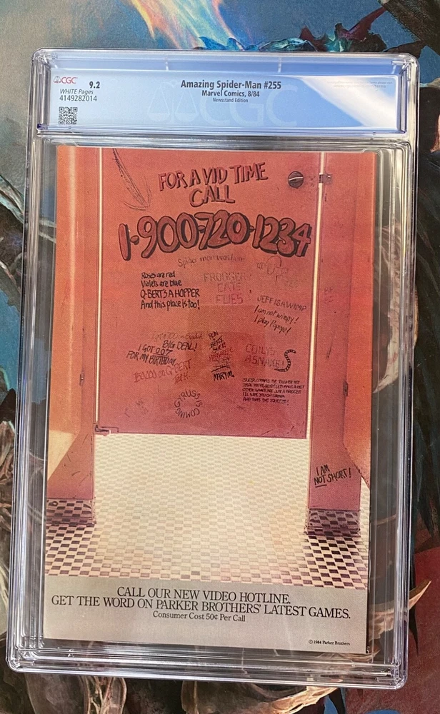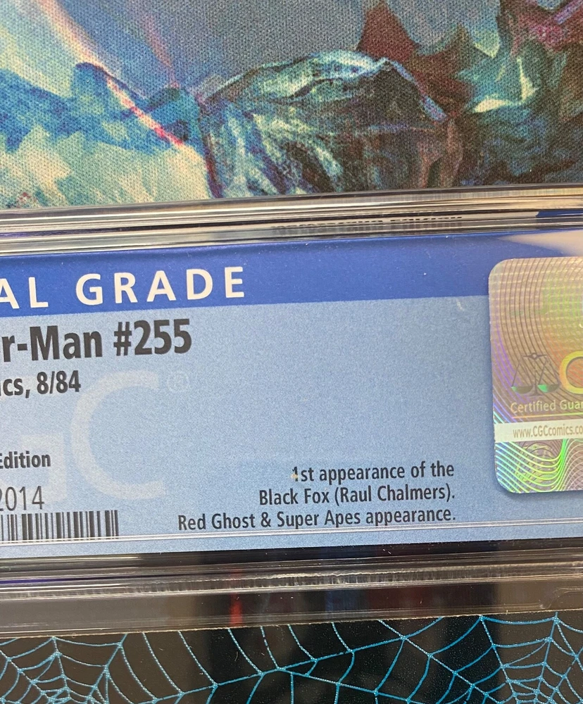 Amazing spiderman #255 graded by CGC at a 9.2! The slab is clean with no cracks and little to no scratches! This book feature the first appearance of black fox! This issue is also a newsstand version! This is a excellent book for a gift for your favorite comic collector whether that be a friend or yourself!