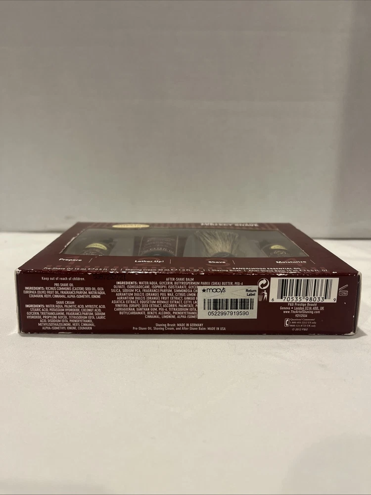 gtin13:0670535980339MPN:92112534Country/Region of Manufacture:United StatesHandle Material:PlasticBrand:The Art Of ShavingUPC:0670535980339Type:Shaving KitSet Includes:Shaving Brush, Pre Shave Oil, Shaving Cream, After Shave Balm
