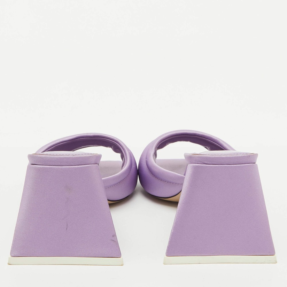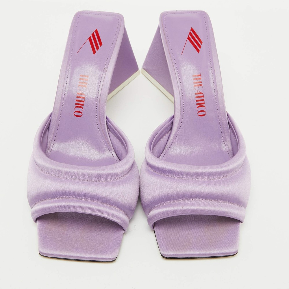 Our eBay Store About Us Contact Us Add to Favorite Sellers The Attico Light Purple Satin Devon Slide Sandals Size 385 These sandals will frame your feet in an elegant manner. Crafted from quality materials, they display a classy design and comfortable insoles. Product Details Brand The Attico Color Purple Includes The Luxury Closet Packaging Outsole Length 24 cm Outsole Width 8.5 cm Size 38.5 Certified by The Luxury Closet This item has gone through a detailed authentication process overseen by our experts. We offer a lifetime guarantee of authenticity on all our items. How We Check The in-house team of experts at The Luxury Closet is highly trained to verify the authenticity and the condition of the luxury products. They ensure that only 100% authentic items are put on sale.The evaluation process is unique with its own mix of assessment criteria and differs according to the category. Each item is evaluated based on the following combination of hallmarks, hardware, stitching, symmetry, material, craftsmanship, stamping, codes, hologram stickers, and packaging. Our authenticators also check if the items have been modified or amended (e.g., aftermarket diamonds, replaced batteries, repaired bags, etc.) International Buyers Import duties, taxes and charges are not included in the item price. These charges are the buyers responsibility. Please check with your country’s customs office to determine what these additional cost will be prior to buying.