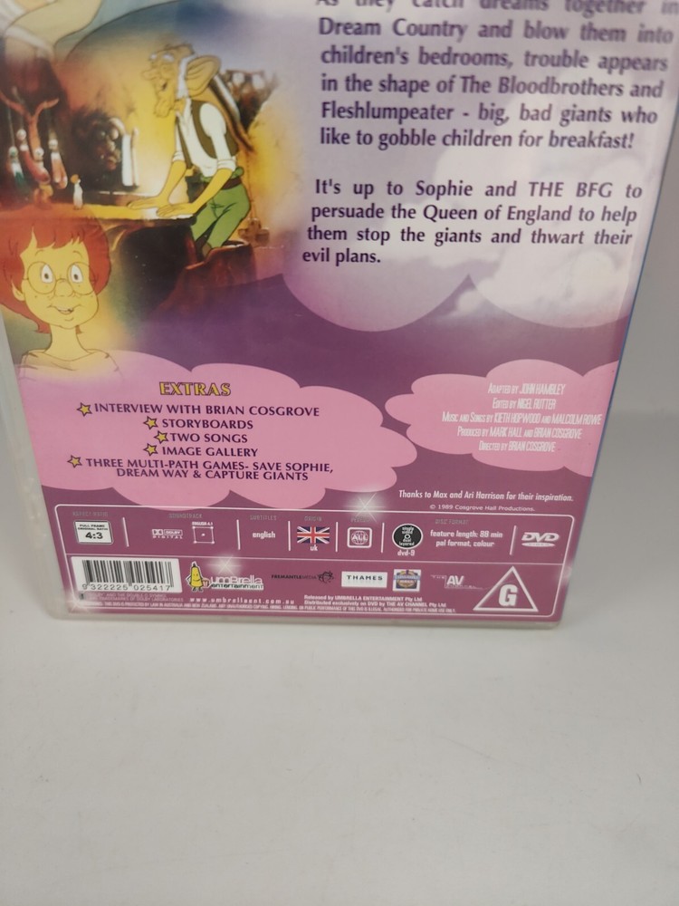 The BFG - Big Friendly Giant (DVD, 1989) R4) Good Condition - Free Postage a10🚨. Hello Ebay Family! We have a wide selection of items available for purchase, including clothes and DVDs. We list new items daily and have thousands of items for you to choose from. The photos you see of items are of the item you are buying 😊👍🏻 not stock photos All items are sent tracked through Australia Post (if paid for) and tracking information will be sent to you as soon as possible. We are always happy to combine postage on all items in our store, so you can either add multiple items to your cart or send/accept offers and the price of postage should combine automatically for you! All reasonable ‘best offers’ will be considered, unreasonably low offers will respectfully be declined. We kindly ask you to regognise the care, attention and time invested in every aspect of our service when making an offer. Your understanding and respect for these efforts go a long way in supporting small businesses like ours. If you have any questions or concerns, feel free to send us a message and we'll do our best to help. We do our best to make note of any faults/flaws with all of our items, but we are still only human. If we happen to overlook something, don’t hesitate to get in touch with us first before leaving negative feedback so we can reach an amicable solution. Thank you for stopping by! Hello Ebay Family! We have a wide selection of items available for purchase, including clothes and DVDs. We list new items daily and have thousands of items for you to choose from. The photos you see of items are of the item you are buying ??? not stock photos All items are sent tracked through Australia Post (if paid for) and tracking information will be sent to you as soon as possible. We are always happy to combine postage on all items in our store, so you can either add multiple items to your cart or send/accept offers and the price of postage should combine automatically for you! All reasonable ?best offers? will be considered, unreasonably low offers will respectfully be declined. We kindly ask you to regognise the care, attention and time invested in every aspect of our service when making an offer. Your understanding and respect for these efforts go a long way in supporting small businesses like ours. If you have any questions or concerns, feel free to send us a message and we'll do our best to help. We do our best to make note of any faults/flaws with all of our items, but we are still only human. If we happen to overlook something, don?t hesitate to get in touch with us first before leaving negative feedback so we can reach an amicable solution. Thank you for stopping by!