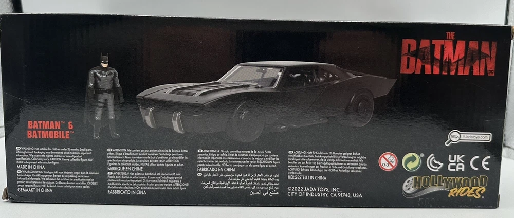 Get your hands on the ultimate Batman collectible with this Jada Toys Hollywood Rides Batmobile die-cast car. Featuring a sleek black design and made of high-quality metal, this 1:32 scale model is perfect for fans of all ages. With unopened packaging and a recommended age range of 8+, this toy is sure to be a hit. The Batmobile is a must-have for any Batman enthusiast, and this Jada Toys model is no exception. Complete with the iconic Batman logo and Hollywood Rides series branding, this toy car is a perfect addition to any collection. Don't miss out on the chance to own this highly sought-after item.