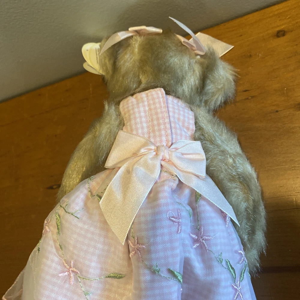 The Bearington Collection May Flowers Teddy Bear Floral Pink Dress & Bow 143223. New with tags.