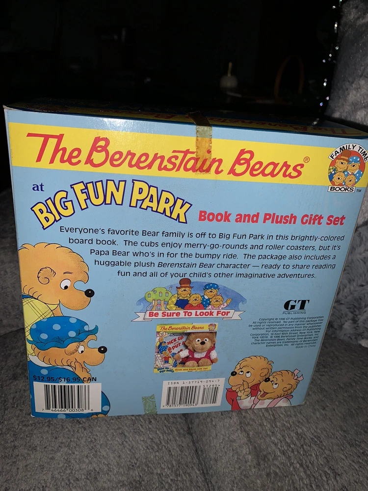We have up for auction this Berenstain Bears book and plush gift set “at Big Fun Park”. It has never been removed from the box or played with, it has been stored away since purchased new. The box is in good condition for its age. These pictures are of the actual item you will receive. Comes from a smoke free and pet free environment. Feel free to message me with any questions. Postage is based on location. Thank you for looking and please check out our other auctions. PLEASE NOTE WE STRIVE TO DELIVER 5 STAR CUSTOMER SERVICE International shipping must make arrangements before bidding. We are not responsible for your countries import fees, duties or taxes; which can be very expensive. Those fees are not included in the postage.