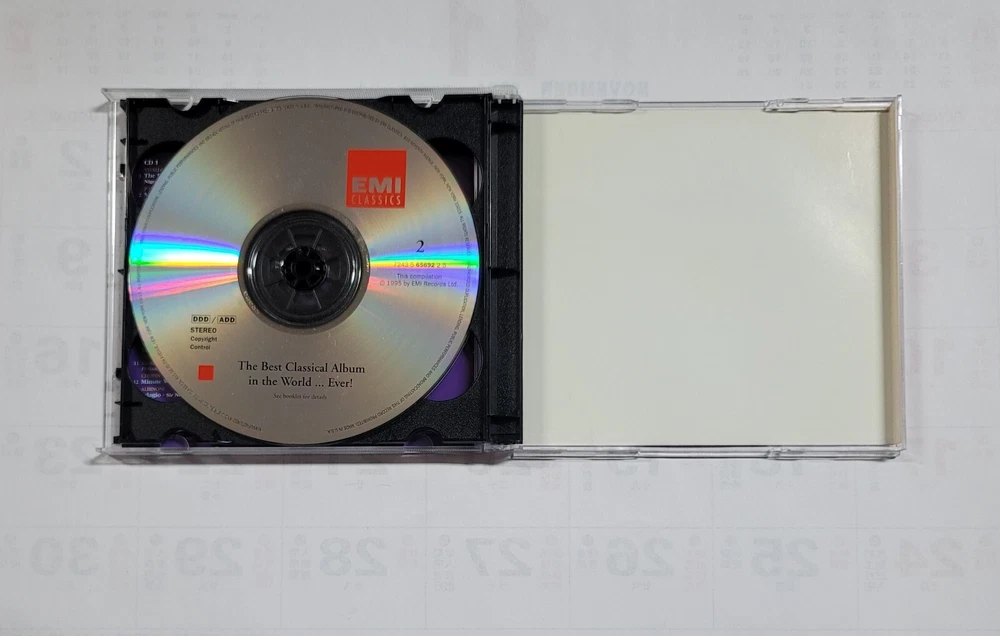 Inlay Condition:Good (G)Case Condition:Good (G)Release Title:The Best Classical Album In The World EverFormat:CDgtin13:0724356569027Record Label:EMI ClassicsRelease Year:1996Case Type:Jewel Case: StandardCD Grading:Good (G)Genre:ClassicalType:AlbumArtist:VariousUPC:0724356569027