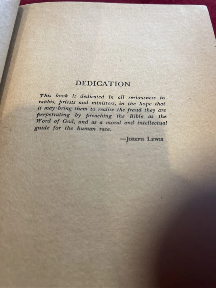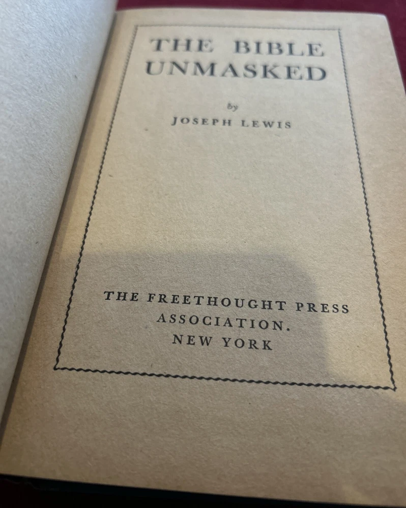 The Bible Unmasked Joseph Lewis Book Hardcover 1926 Edition 1952, 1st Edition.**