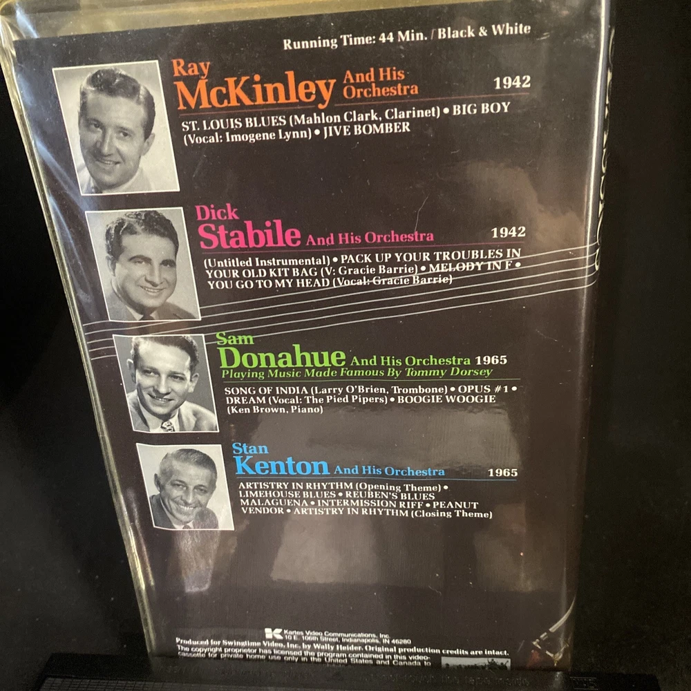 This VHS tape features some of the best big band music from some of the greatest musicians of all time. Sit back and enjoy the sounds of McKinley, Stabile, Donahue, Kenton, and all their glorious music. The tape is in excellent working condition and is ready for your viewing pleasure. The movie/TV title is Volume 110 and the language is English. The signal standard is NTSC and the rating is NR. This VHS tape is in very good condition. The genre is music and concerts, and the country/region of manufacture is the United States. Don't miss out on this opportunity to add some classic big band music to your collection.