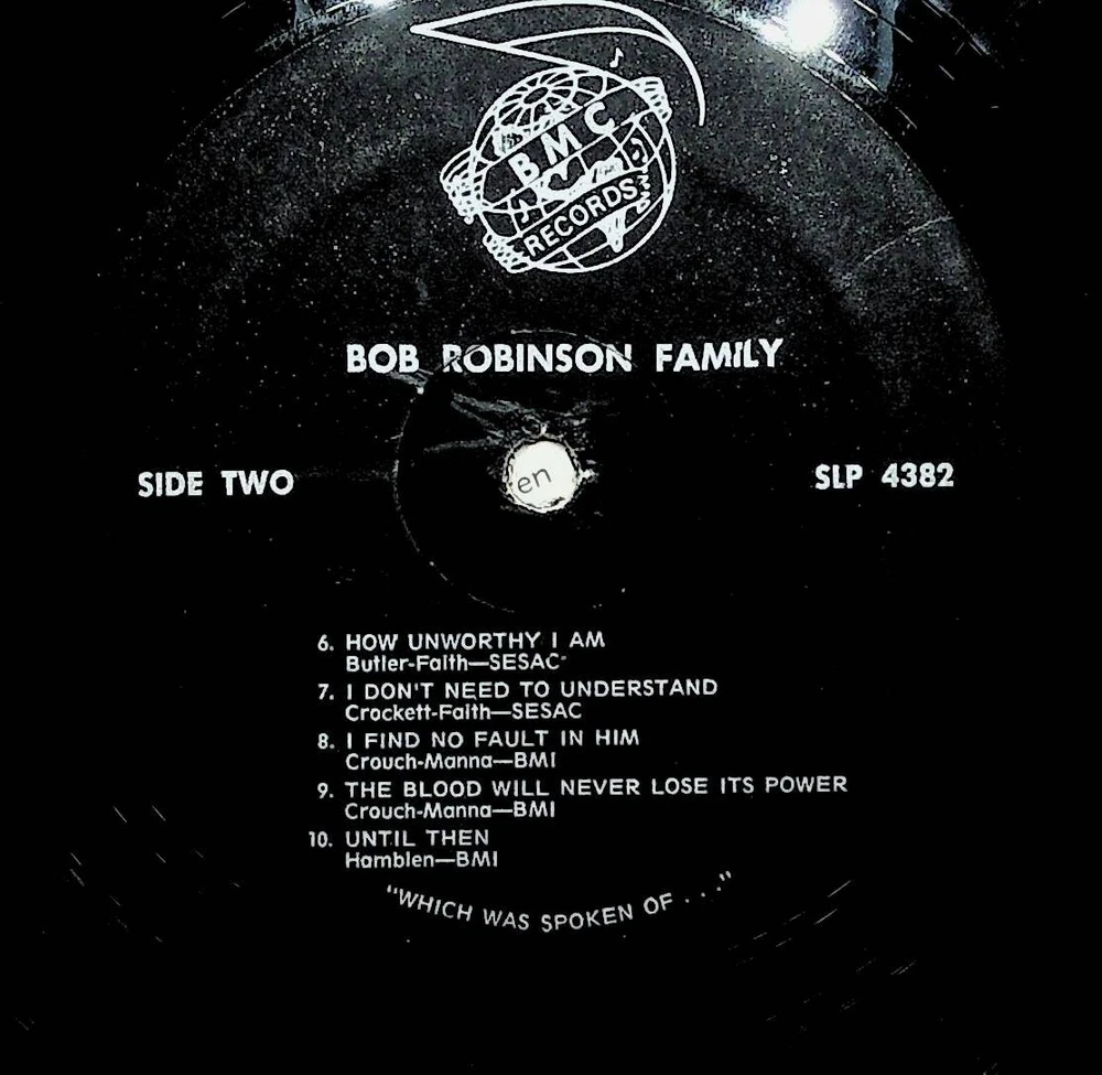 Yes we combine shipping for multiple purchases. Add multiple items to your cart and the combined shipping total will automatically be calculated. The Bob Robinson Family That Which Was Spoken Of Gospel Vinyl LP Record VG+ Vinyl / Jacket Grade Per Goldmine Standard: VG+ / VG+ SIDE ONE 1. PRECIOUS JESUS Pierce — BMI 2. WALK WITH ME Rambo — BMI 3. I WILL SERVE THEE Gaither — SESAC 4. WITHOUT HIM LeFevre-Sing — BMI 5. NOW I HAVE EVERYTHING Engle — BMI SIDE TWO 6. HOW UNWORTHY I AM Butler-Faith — SESAC 7. I DON'T NEED TO UNDERSTAND Crockett-Faith — SESAC 8. I FIND NO FAULT IN HIM Crouch-Manna — BMI 9. THE BLOOD WILL NEVER LOSE ITS POWER Crouch-Manna — BMI 10. UNTIL THEN Hamblen — BMI To have a singing group is not an unusual thing To have a singing family is not so unique since singing families seem to be riding a high wave in the field of gospel music. However to be a part of the Bob Robinson family is not only unique but also a dream come true. As all lovers of gospel music are aware, Bob Robinson is no stranger to gospel music having sung with some of the greats viz, Deep South Quartet, LeFevres, Sons of Song He was selected as "Mr Gospel Singer of America" in the late fifties, and has been copied more often by gospel soul singers than almost anyone. He is known as the man with a tear in his voice — very interpretive and inspiring in his musical offerings Long ago I saw the gleam in Bob's eye as Deborah and Dan would come with their mother Mary to hear Bob sing Mary, being the possessor of a voice unequalled in range and timber, often would join with Bob singing However, the kids would just sit and look longingly and admiringly at Mom and Dad, waiting until their time come Well, it's here now; "Deb" and "Dan" have graduated from school Dan having enrolled in college, Deb having become a much sought after hair stylist and beauty consultant — but they like to sing This group is a pure family group — no outsiders, just Mom, Dad, son, and daughter; and when the heritage which they have individually, plus the Spirit of the Lord guiding their lives was meshed — something good had to happen IT DID The results are the cause of many souls being won to Christ through their ministry of song and music. Often dreaming of this day and speaking almost in reverent tones of the tomorrow they longed for — finally they have realized the consumma- tion of at least one of their goals, their first long play album. The Bob Robinson family wants you to like it. I believe you will when you listen to "that which was spoken of". Just a friend Uncle Don CREDITS Studio: Monument/Nashville Producer: Bob McCollum Engineer: Tommy Strong BMC Staff Musicians Thank you for your business. Gallimoresgoods