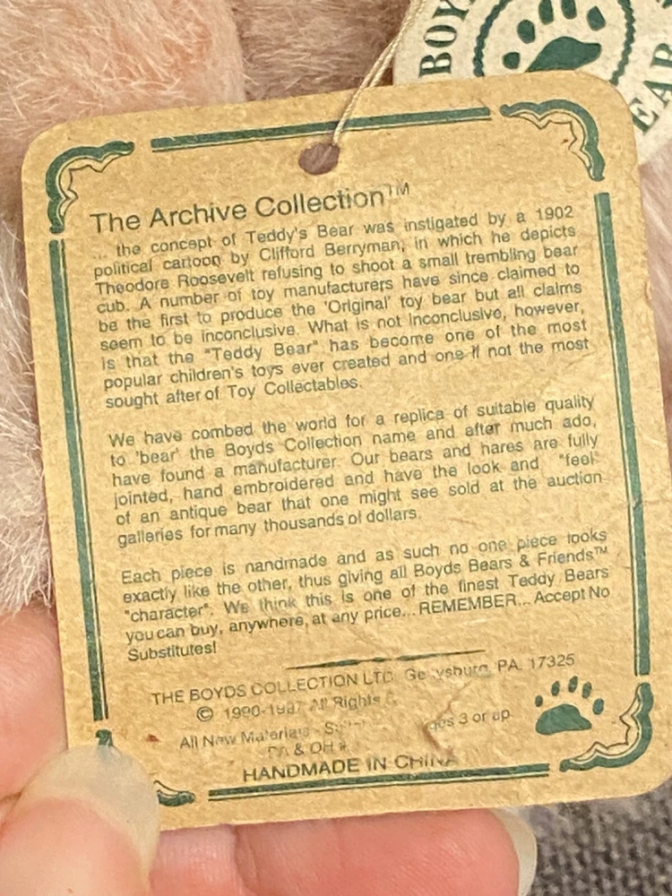 Recommended Age Range:4+Size:Small (6-14 in)Color:PinkAge Level:4-7, 8-11 Years, 12-16 YearsYear:1995Type:Plush ToyCharacter Family:Boyd's BearsOccasion:EasterUPC:Does not applygtin13:Does not applyAnimal:BunnyCountry/Region of Manufacture:ChinaBrand:Boyds