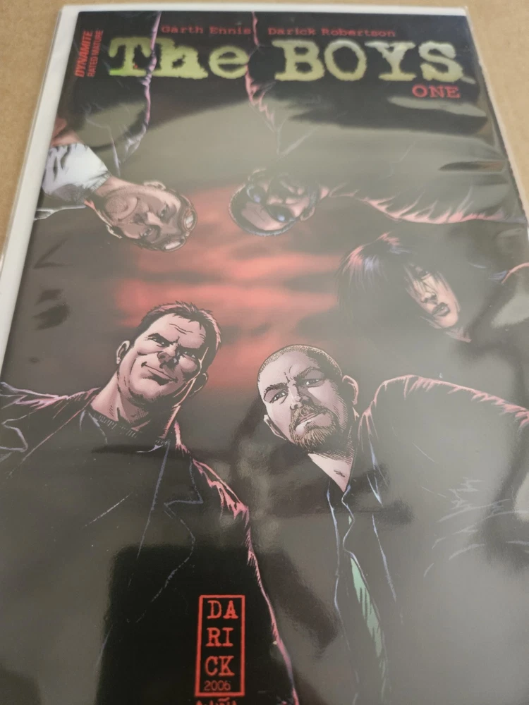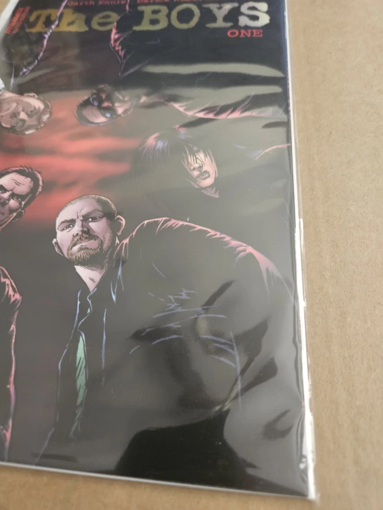 Artist/Writer:Garth Ennis, Darick Robertson, John McCreaLanguage:EnglishSeries Title:The BoysTradition:US ComicsCover Artist:Darick RobertsonType:Comic BookCountry/Region of Manufacture:United StatesCharacter:Mother's Milk, Homelander, Billy ButcherUniverse:The BoysPublisher:Dynamite EntertainmentSuperhero Team:The BoysIssue Number:1Publication Year:2022Genre:Superheroes, Action, AdventureFeatures:Limited Edition, Boarded, Special Edition, First Character Appearance, Key Issue, Variant CoverVariant Type:Retailer Exclusive VariantGrade:9.6 Near Mint+Format:Single IssueEra:Modern Age (1992-Now)Unit of Sale:Single Unit