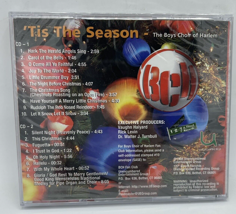 Case Type:Jewel Case: StandardStyle:ChristmasComposer:N/ACD Grading:Excellent (EX)Conductor:N/ALanguage:EnglishOccasion:ChristmasEra:1990sRelease Title:Tis the SeasonUPC:N/AEdition:Limited EditionRelease Year:1997Case Condition:Near Mint (NM or M-)Format:CDRecord Label:UnencumberedInstrument:Acoustic Guitar, Bass Guitar, Drums, Electric GuitarType:AlbumArtist:The Boys Choir of HarlemCatalog Number:2304-2Color:MulticolorFeatures:Original Cover, Original Inner Sleeve, SealedGenre:Children's Music, Christian, Contemporary Christian, Gospel, Christmas, Rock & PopProducer:Vaughn Halyard, Rick Levin, Dr. Walter J. TurnbullInlay Condition:Excellent (EX)Country/Region of Manufacture:United Statesgtin13:N/A
