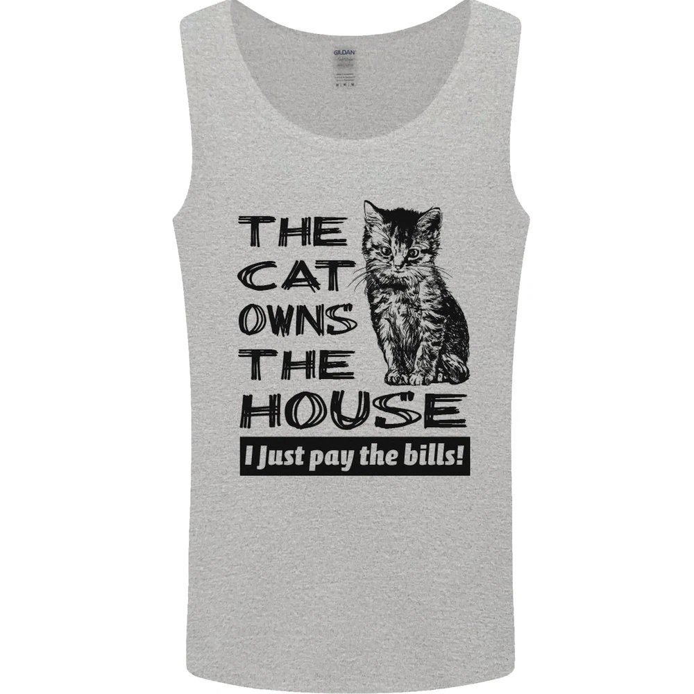 The Cat Owns the House Funny Kitten Mens Vest Tank Top