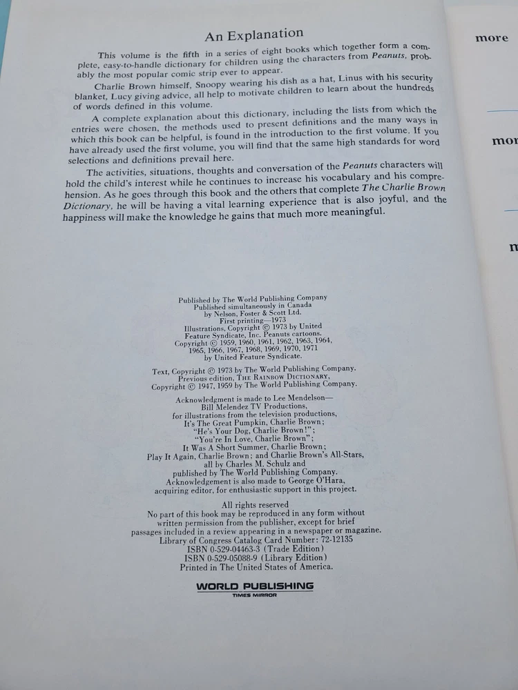 Era:1970sFeatures:IllustratedGenre:Children & Young AdultsPersonalize:NoFormat:HardcoverEx Libris:NoCountry/Region of Manufacture:United StatesSigned:NoPersonalized:NoInscribed:NoAuthor:Charles M. SchulzTopic:BookLanguage:EnglishBook Title:Charlie Brown Dictionary