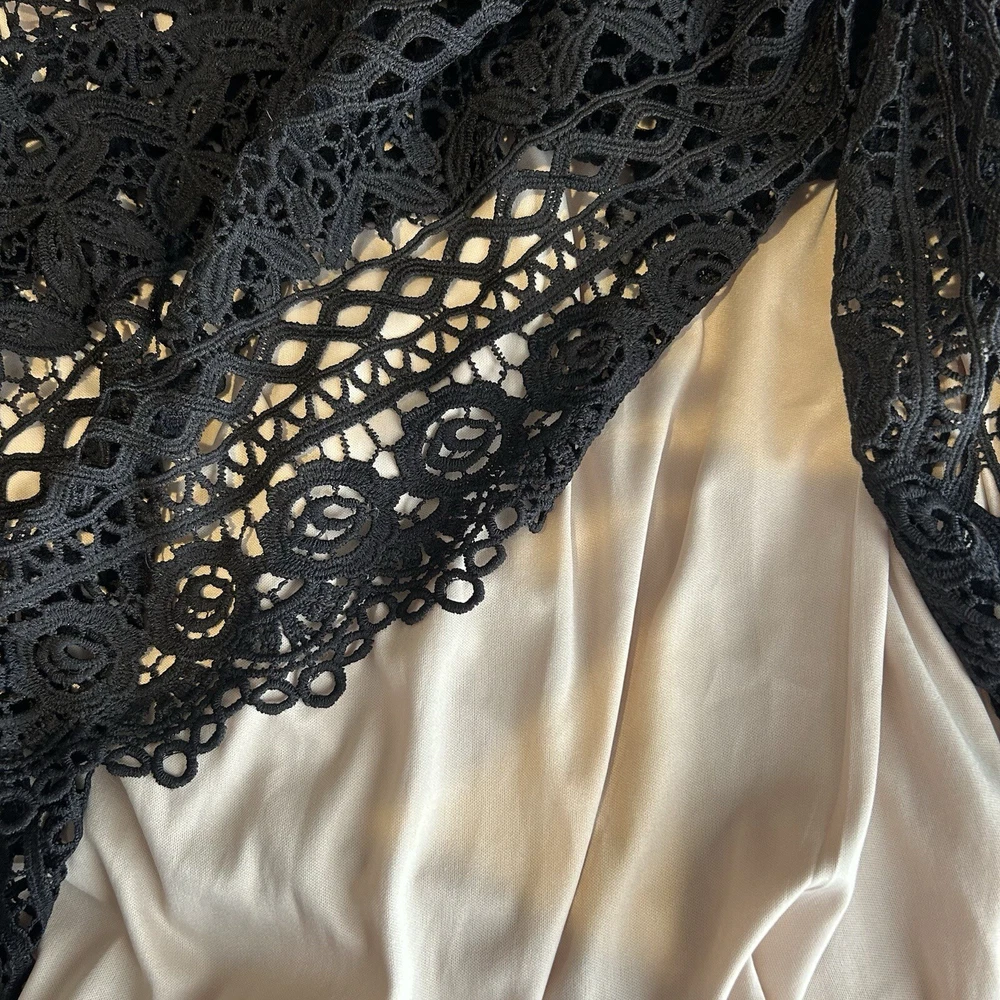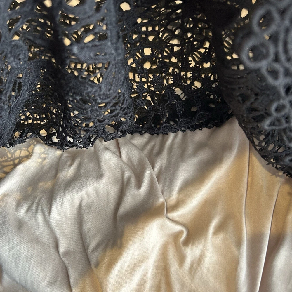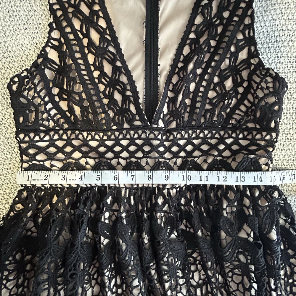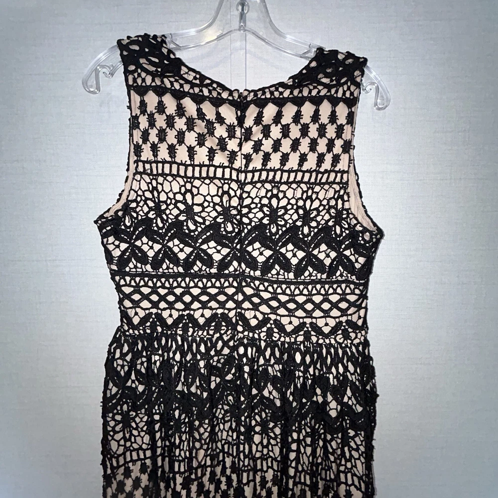 This elegant black maxi dress from The Clothing Company is a stunning addition to any wardrobe. Featuring a beautiful lace pattern, sleeveless design, and a V-neckline, this dress is perfect for formal occasions. The dress is made of high-quality polyester material with a crochet fabric type, making it both comfortable and durable. The dress has a zip closure and is lined for added comfort. It comes in size L . The dress is perfect for all seasons, including winter, summer, fall, and spring. Add this beautiful black maxi dress to your wardrobe today and make a statement at your next formal event!