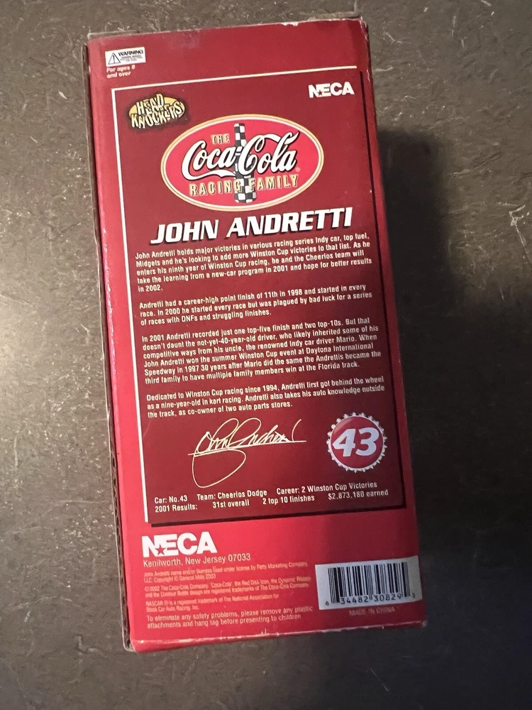 Driver:John AndrettiOfficially Licensed:NoLeague:NASCARProduct:BobbleheadBrand:Coca-Colagtin13:0634482308295UPC:0634482308295Color:BlueSport:Auto Racing