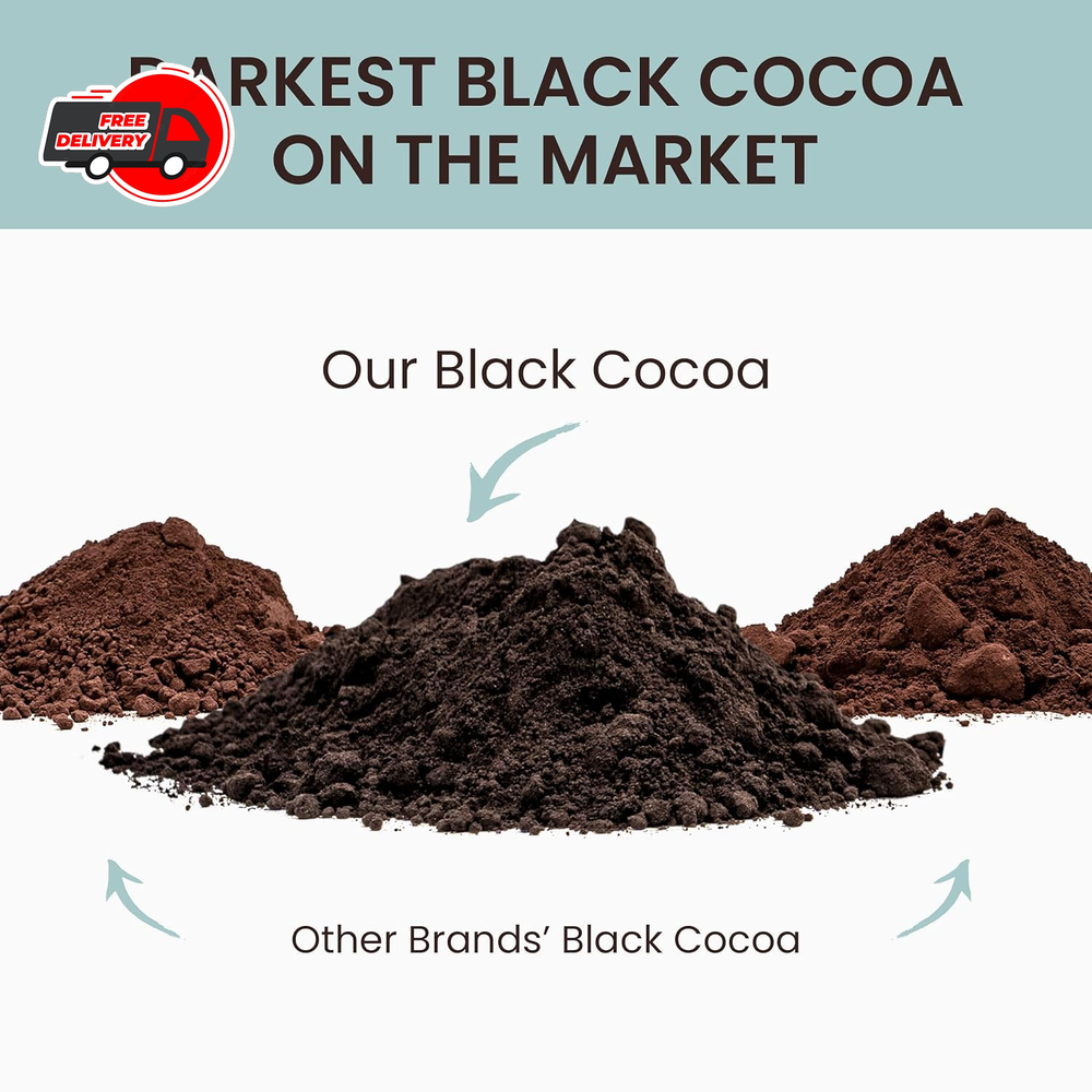 [Darkest Black Natural Coloring Agent] Enhance your chocolate cakes, cookies, hot chocolate, smoothies, and other sweet treats with our intensely dark cocoa powder. This natural coloring agent gives your creations a rich, deep black hue—perfect for bold, dramatic desserts! Plus, it's 100% vegan and gluten-free! [Alkalized for a Deep, Rich Flavor] Made from 100% authentic cacao beans, our black cocoa powder undergoes Dutch processing (alkalization) to deliver a smoother, less bitter taste—free from artificial flavors or preservatives! [Sugar-Free Dark Cocoa Powder] Enjoy your favorite treats guilt-free with our unsweetened cacao powder! This European-style cocoa undergoes alkalization to neutralize its pH, transforming its natural brown hue into an intense, deep black color—perfect for rich, bold desserts. [Ready to Use] Our Dutch-processed cocoa powder dissolves instantly in hot liquids, making it effortless to use whenever you need it. Perfect for whipping up rich, chocolatey treats for friends and family in no time!
