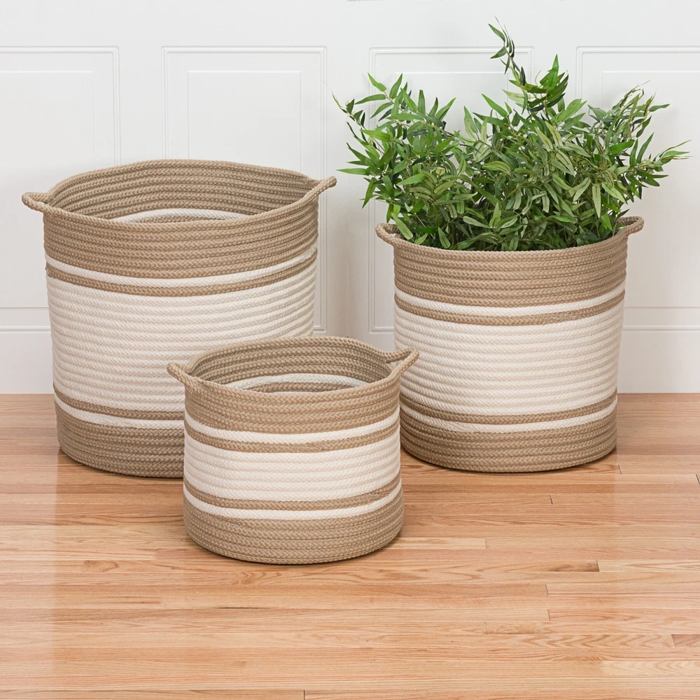 Display a favorite potted plant or store linens and more with this versatile braided basket from The Curated Nomad. Made of polypropylene fiber, this durable basket is suitable for indoor or outdoor use.Features:Includes 1 round basket2 handles for easy carryingMade of polypropylene materialCablelock braided constructionTextured look and feelIndoor or outdoor useResists stains, mildew, and fadingHandcrafted and made to orderAvailable in multiple sizes and colors Free Shipping Over $49.99* Details The Curated Nomad Comstock Indoor/ Outdoor 2-tone Soft Braided Basket Product Description: Display a favorite potted plant or store linens and more with this versatile braided basket from The Curated Nomad. Made of polypropylene fiber, this durable basket is suitable for indoor or outdoor use. Features: Includes 1 round basket 2 handles for easy carrying Made of polypropylene material Cablelock braided construction Textured look and feel Indoor or outdoor use Resists stains, mildew, and fading Handcrafted and made to order Available in multiple sizes and colors