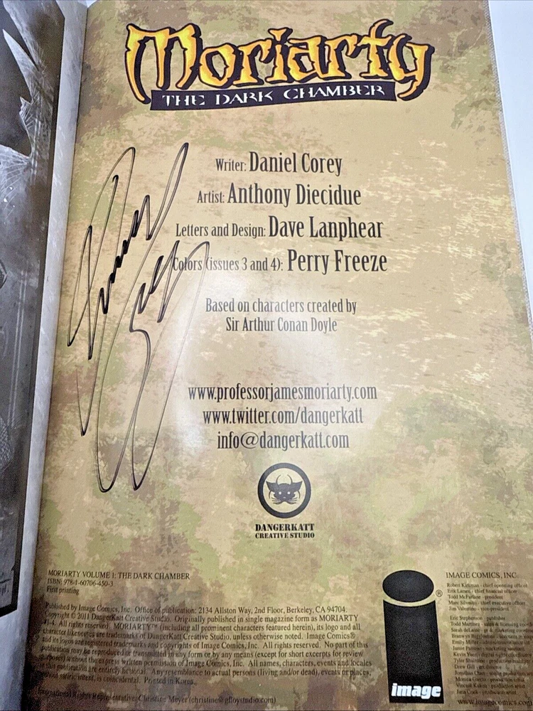 This is a signed copy of Moriarty: The Dark Chamber , a thrilling graphic novel by Daniel Corey. This volume is signed by the author, making it a rare find and a must-have for collectors and fans of the Moriarty series. The story takes you into the dark, twisted world of the infamous Sherlock Holmes adversary, bringing a new layer to the legendary villain. The graphic novel is in excellent condition and features stunning artwork by Anthony Diecidue, capturing the essence of Moriarty's shadowy adventures. This signed copy is perfect for collectors, fans of Sherlock Holmes, or anyone who loves a great graphic novel with a dark twist. Features: Signed by Author Daniel Corey : This copy includes an authentic signature from Daniel Corey, adding value and collectibility. Stunning Artwork : Illustrated by Anthony Diecidue, the visuals bring Moriarty's chilling story to life. Great Condition : The graphic novel is well-preserved and perfect for display or collection. Rare Auction Item : Signed editions of Moriarty: The Dark Chamber are rare, and this auction is a chance to own a piece of the iconic series. Bid now to add this incredible signed graphic novel to your collection. Don’t miss out on this rare opportunity! 🌟 Visit My Store for More Collectibles! 🌟 Love this item? Check out my eBay store for even more amazing comics, action figures, and collectibles! Click here 👉 ANM Collectibles to explore my full collection. Don't miss out on great deals—new items added regularly! 🛒✨