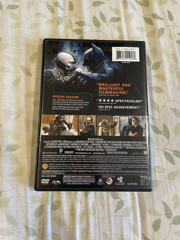 The Dark Knight Rises 2012 DVD Christopher Nolan Batman Movie