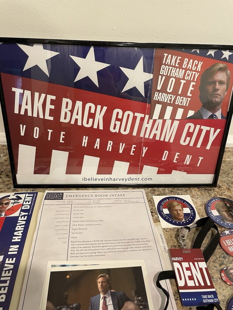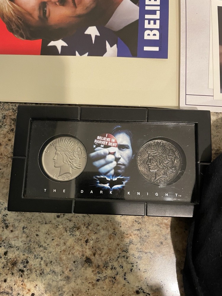 This listing is for the Dark Knight Harvey Dent movie prop replicas/ memorabilia LOT. You get everything pictured. These items are VERY RARE AND ALMOST IMPOSSIBLE to come by anymore. Own pieces of movie history! Very sad to let these go. My loss your gain! NO RETURNS OR EXCHANGES. ALL SALES ARE FINAL.