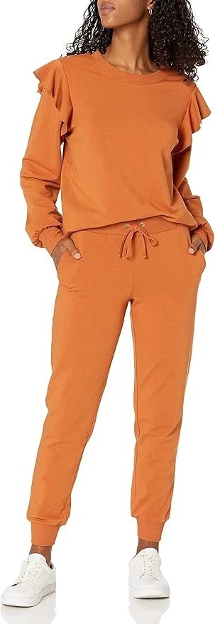 The Drop Grace Supersoft Rib Cuff Jogger Sweatpants Stretch French Terry Women S New With Tags - Brand New Size - Small Color - Adobe (Burnt Orange) Inseam - 28" A super soft stretch French terry pant, with embroidered branding detail on back waist and a mid-rise silhouette 50% Cotton, 50% Modal Models are 5'10"/178 cm and wearing a size S