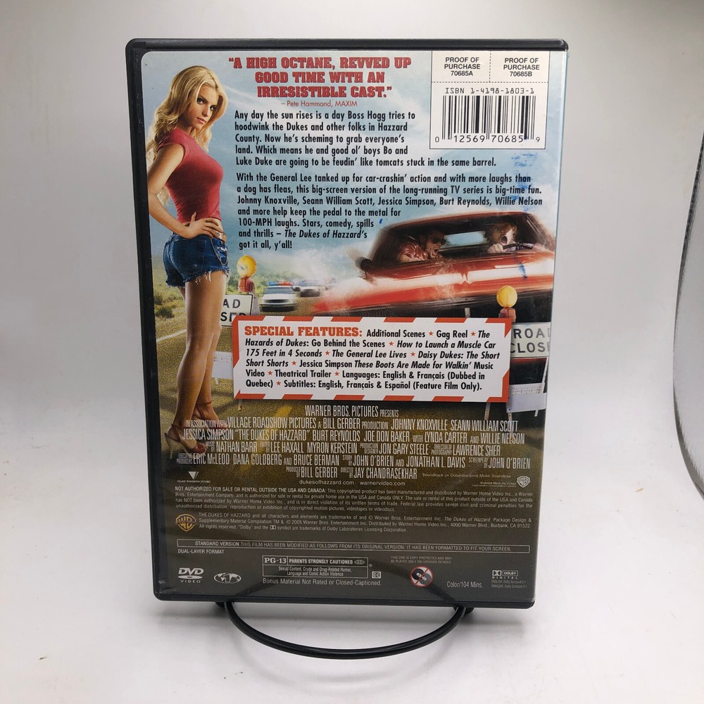 Actor: Jessica Simpson, Seann William Scott, Johnny Knoxville UPC: 0012569706859 Rating: PG-13 Case Type: Tall/DVD Case Movie/TV Title: Dukes of Hazzard gtin13: 0012569706859 Seller Notes: “Please see photos. All USED Movies will have some minor scratches and blemishes on cases.” Language: English Type: Movie Director: Jay Chandrasekhar Edition: Full Screen Edition Country/Region of Manufacture: United States Region Code: DVD: 1 (US, Canada...) Format: DVD Release Year: 2005 Genre: Action & Adventure