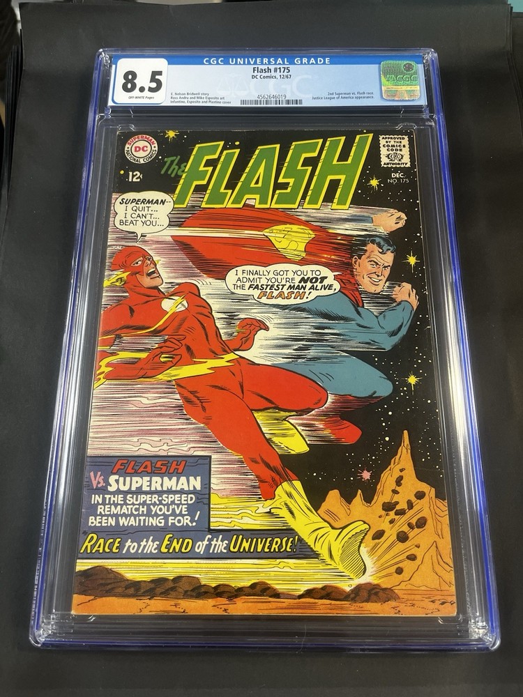 This will only be up from Oct.14 -Oct.19 because we have a brick & mortar , so I encourage to buy , before it’s gone .The product is a vintage DC Comics Flash comic book from 1967, graded CGC 8.5. This single issue features Flash in a fast-paced story, with Carmine Infantino as the cover artist. It belongs to the Silver Age era of US Comics, showcasing the superhero character within the DC Universe. The comic is in English language ,making it a valuable addition to any comic book collection.Please before your purchase take the time to look at the pictures I’ve provided, THIS ITEM IS IN AS IS CONDITION, WITHOUT REFUND ALSO VERY VERY FIRM , IT SHIPS LIGHTNING ⚡️ FAST , GOD BLESS YOU THANK YOU FOR LOOKING 👀.