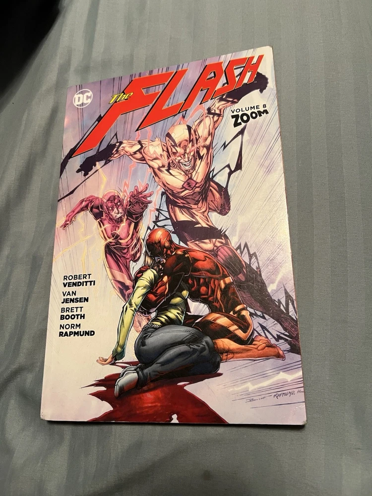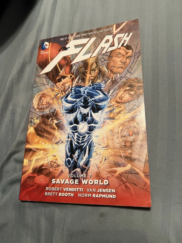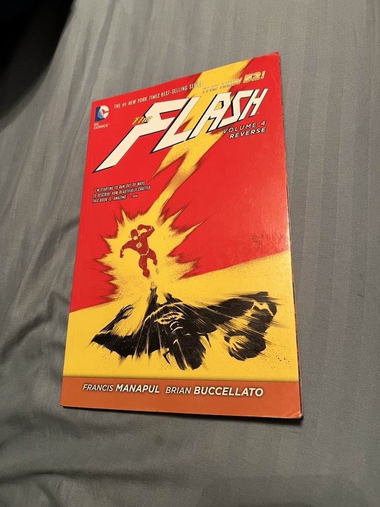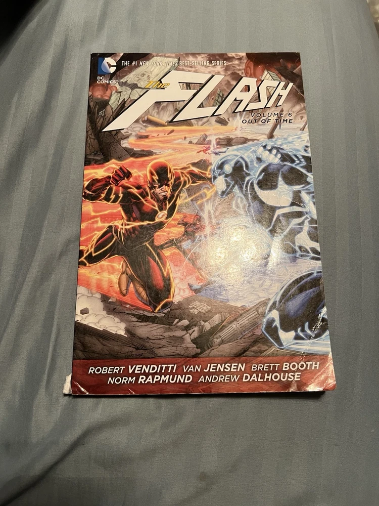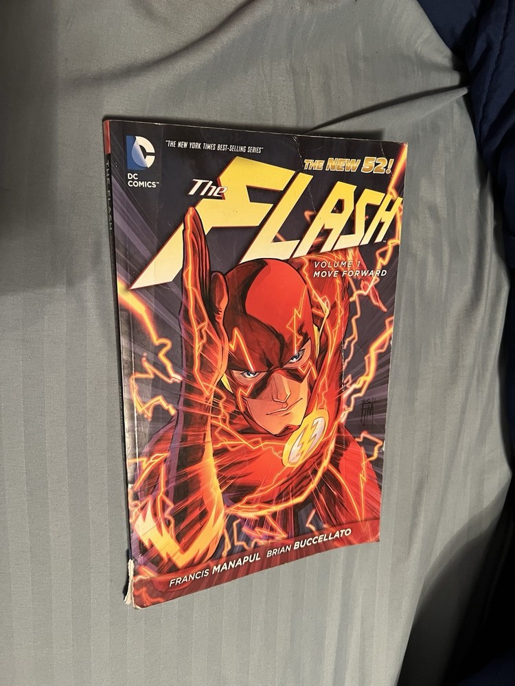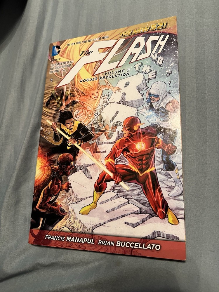 The Complete run of DC Comics New 52 - The Flash (2011-2016) Volumes 1-9 Vol 1 - 8 are paperback and Vol 9 is hardcover with a paper sleeve They are all in good condition with most being very good and only a few experiencing some small breakage on the bottom of the spine and some slight creases in the cover. (See images)