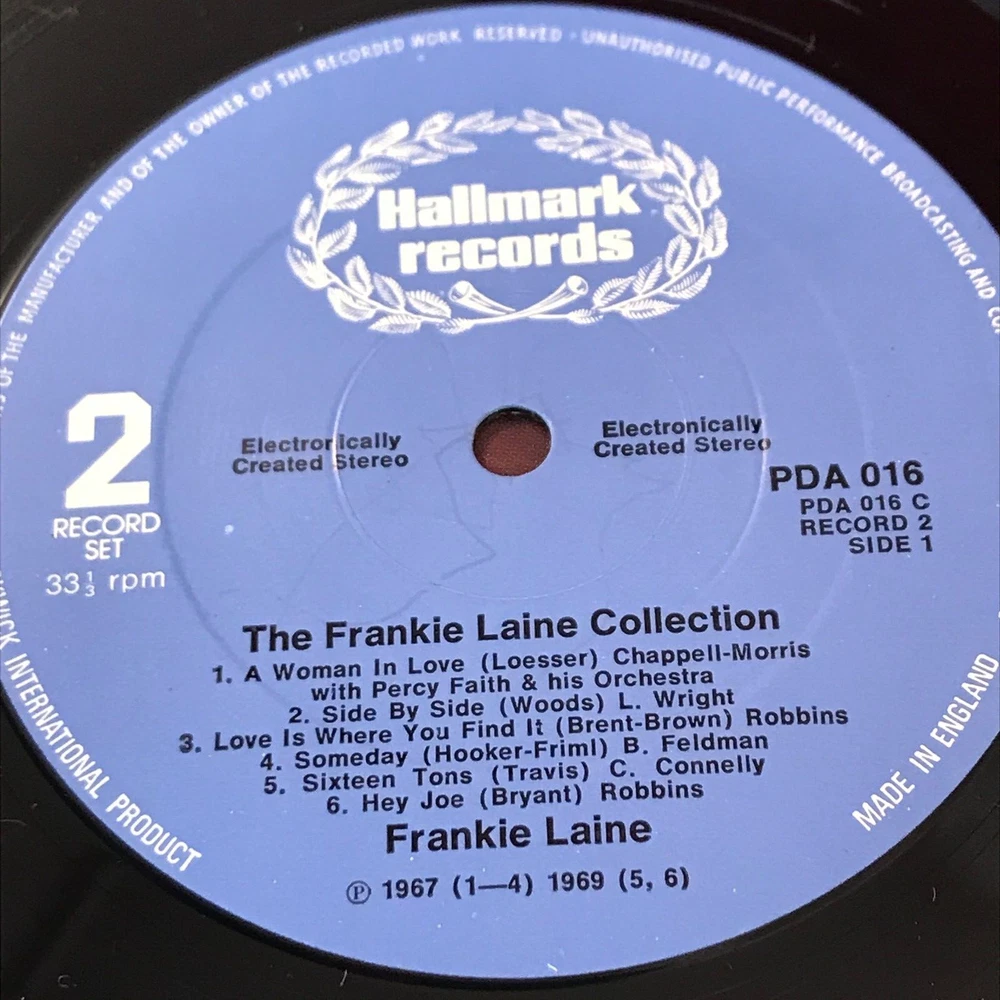 Colour: Black Record Size: LP (12-Inch) Release Title: The Frankie Laine Collection Speed: 33 RPM Case Type: Cardboard Sleeve Material: Vinyl Style: 1950s, 1960s, Country Blues, Country Folk, Country Pop, Country Rock, Cowboy Country, Early Country, Outlaw Country, Traditional/Vocal, Traditional & Vocal, Traditional Country, Vocal, country Format: Record Type: Double LP Edition: Greatest Hits Artist: Frankie Laine Sub-Genre: Mainstream Release Year: 1974 Record Grading: Excellent (EX) Language: English Genre: Country, Easy Listening Era: 1950s Record Label: Hallmark Country/Region of Manufacture: United Kingdom