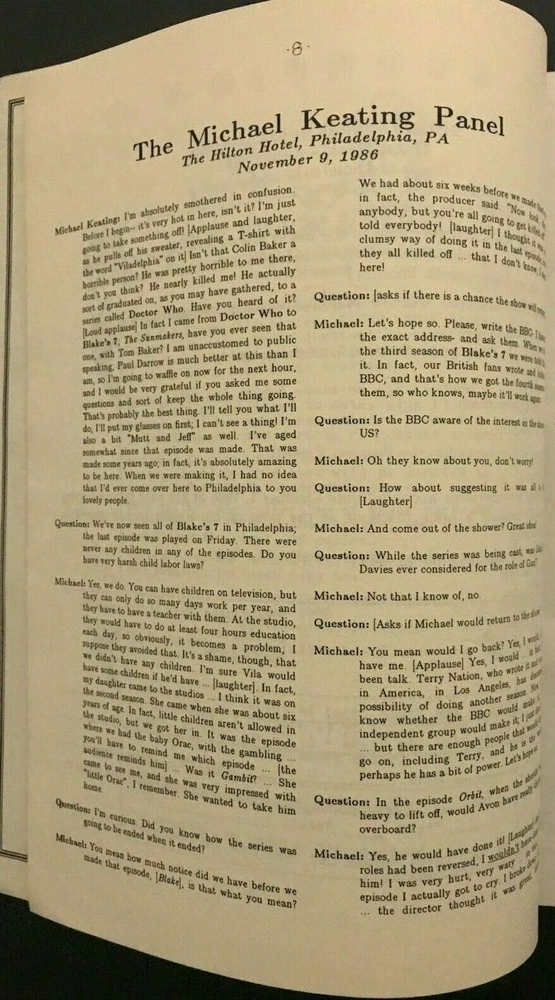 This Rare Space Rat Press Presents: The Freedom City Gazette Jan. 1987 is signed by Michael Keating and is in Excellent Condition. This is a First Issue from the Blake's 7 Fandom. The Gazette was created for the growing number of Blake's 7 fans in the New York/New Jersey area. Most of the creators of this Gazette were big Doctor Who Fans and Members of the Jersey Jargaroth a Doctor Who Fan Club. This First Issue was devoted to Michael Keating, whose portrayal of the cowardly Vila was such an important part of Blake's 7 for four seasons. The Booklet is lead off with a fascinating interview with Michael Keating that provides some insights into the character of Vila and the man who put so much of himself into it. This is an extraordinary selfless interview with Michael Keating. This is followed with a Central Record File, in which the issue has a detailed episode guide for the First Season of Blake's 7. There are many Candid Photos of Keating throughout the Booklet along with a Sketch of him on the back of the Booklet by Ted Slampyak 86' This is an Absolute Must Have for the Doctor Who/Blake's 7 Collector/FAN! RARE FIND! Signed: Audry - Love from Michael Keating (Inside of Last Page of Booklet), See pic. Pages: 20 Page Size: 8 1/2" x 11" You Receive The Space Rat Press Presents: The Freedom City Gazette Jan. 1987 Signed Michael Keating Issue in the Photos Abov e. Please be sure to check out the stores other items! New items listed on a daily basis! If you have any questions please feel free to email any time. Items will be shipped the next business day after payment has been made. Thanks for Shopping at Yobles & Please Come Back Soon! S Comes from a smoke-free and pet-free home .