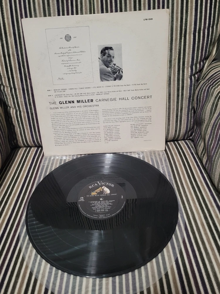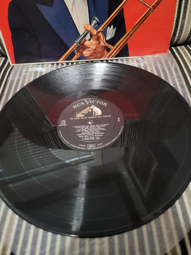 Experience the magic of the iconic Glenn Miller Carnegie Hall Concert, captured on vinyl from 1939 by RCA. This first edition LP features the Glenn Miller Orchestra's big band and swing style, with the legendary trombone player conducting the ensemble. The 12" record, with a black color and cardboard sleeve, boasts a high-fidelity sound quality, making it a must-have for any jazz enthusiast. The excellent (EX) inlay and sleeve grading, along with the very good plus (VG+) record grading, ensures that this vinyl is a valuable addition to any music collection. This original cover LP, with 33 RPM speed and English language, is a rare find for fans of the Glenn Miller Orchestra. Don't miss out on the chance to own a piece of music history!