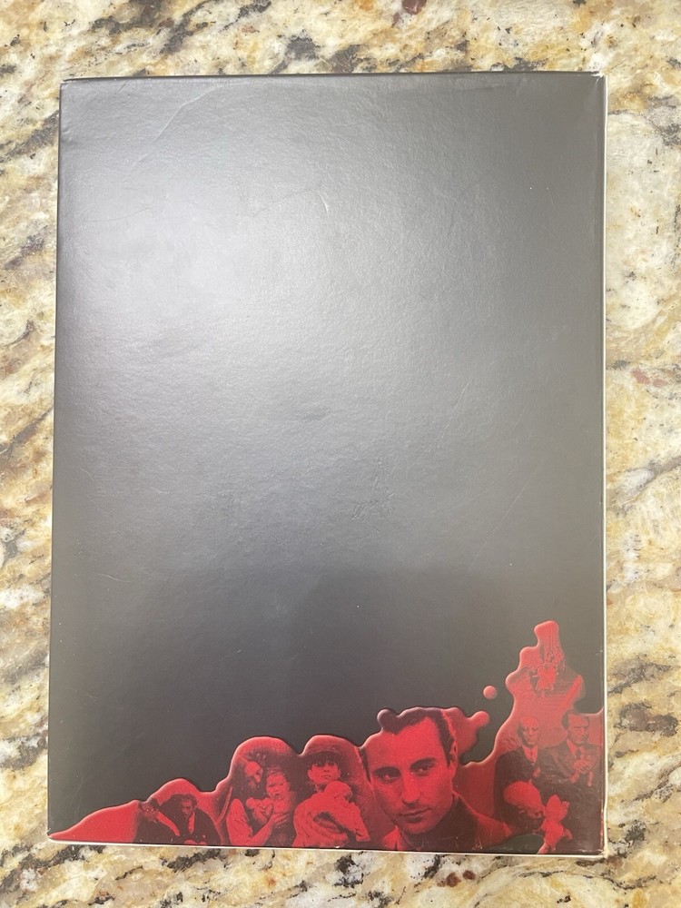 This comprehensive DVD box set of "The Godfather" trilogy, featuring all three films and bonus supplements, is a must-have for fans of the iconic mafia franchise. The Coppola Restoration edition features action, adventure, drama, and gangster genres, with notable performances by Al Pacino, Diane Keaton, and Marlon Brando. The cardboard sleeve shows minor signs of wear, but the discs are in great condition.