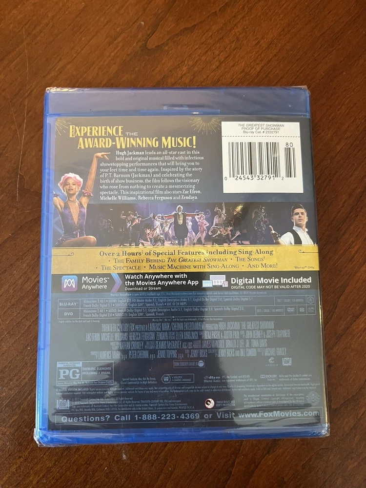 The Greatest Showman Blu-Ray DVD DIGITAL New/Sealed Musical Hugh Jackman