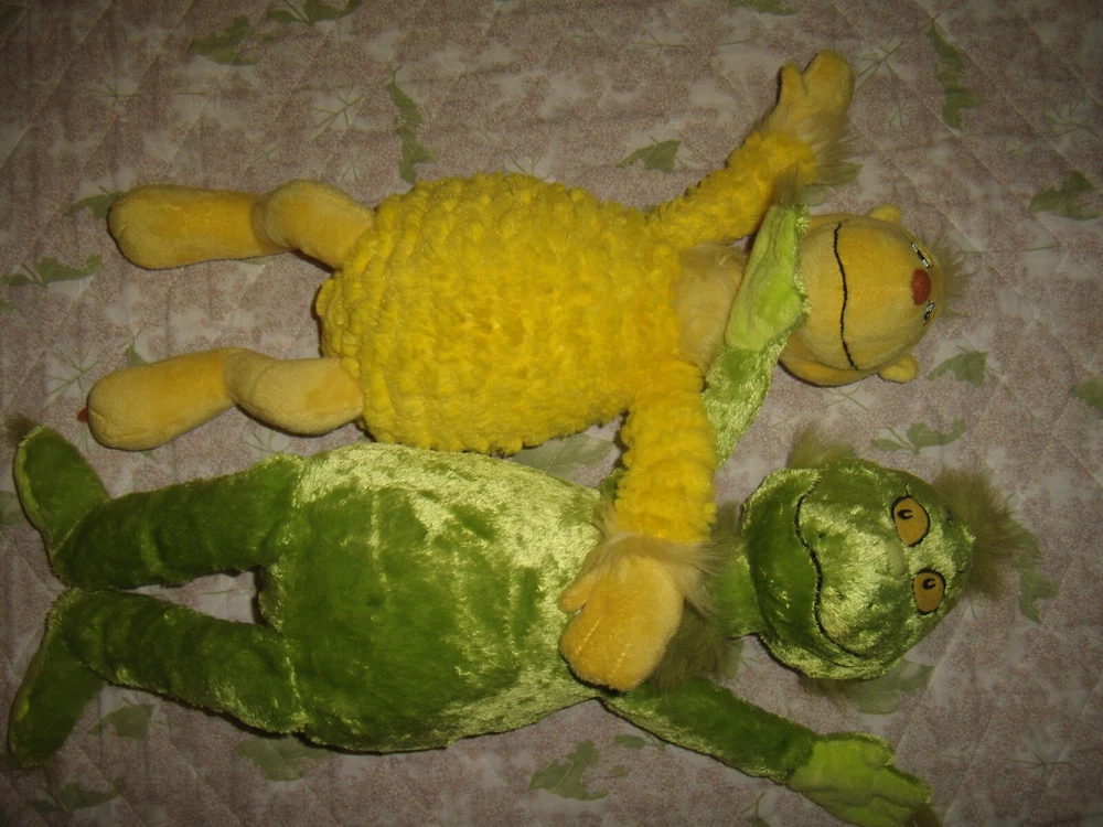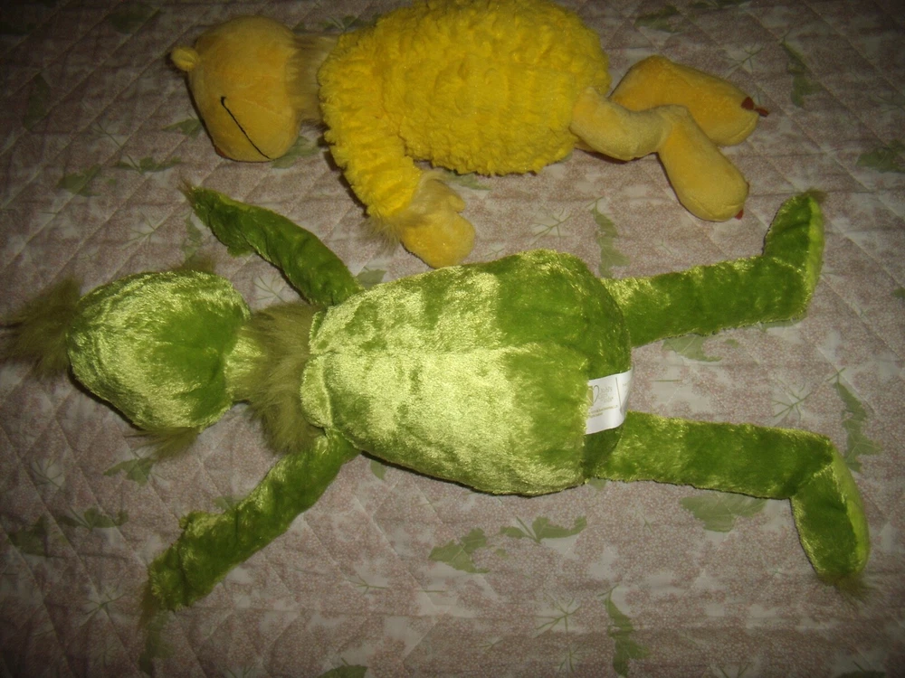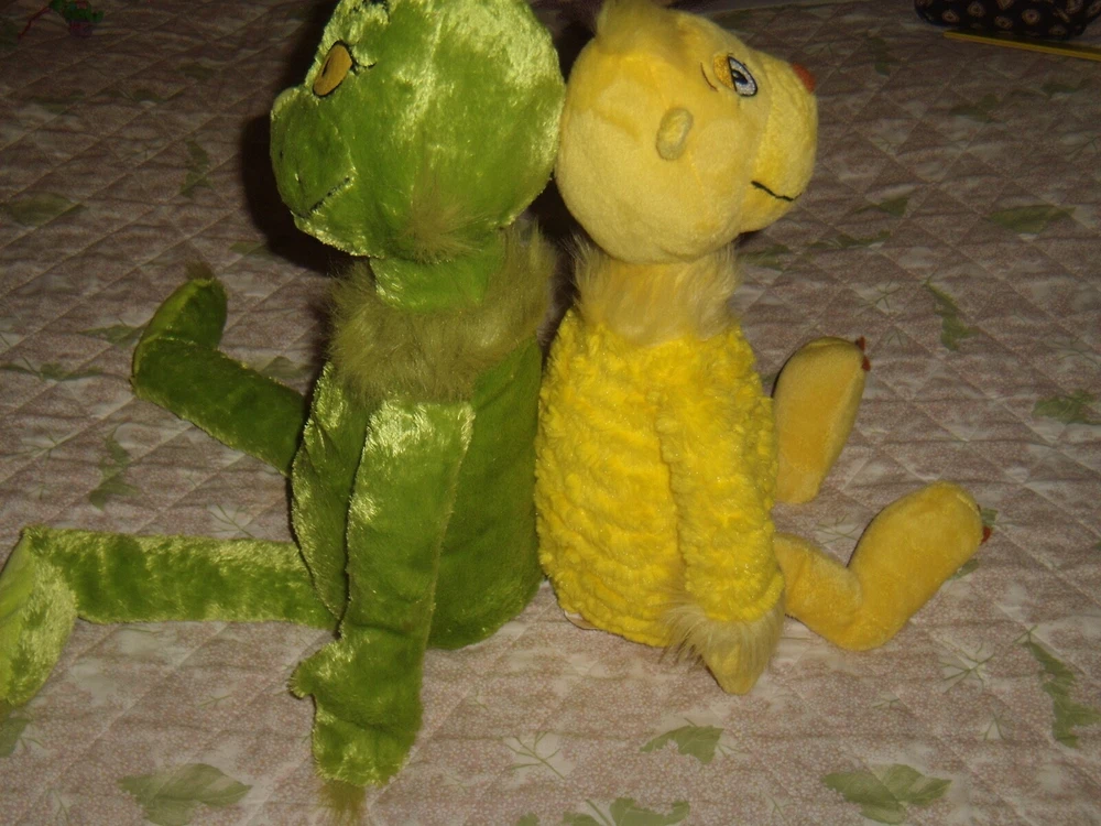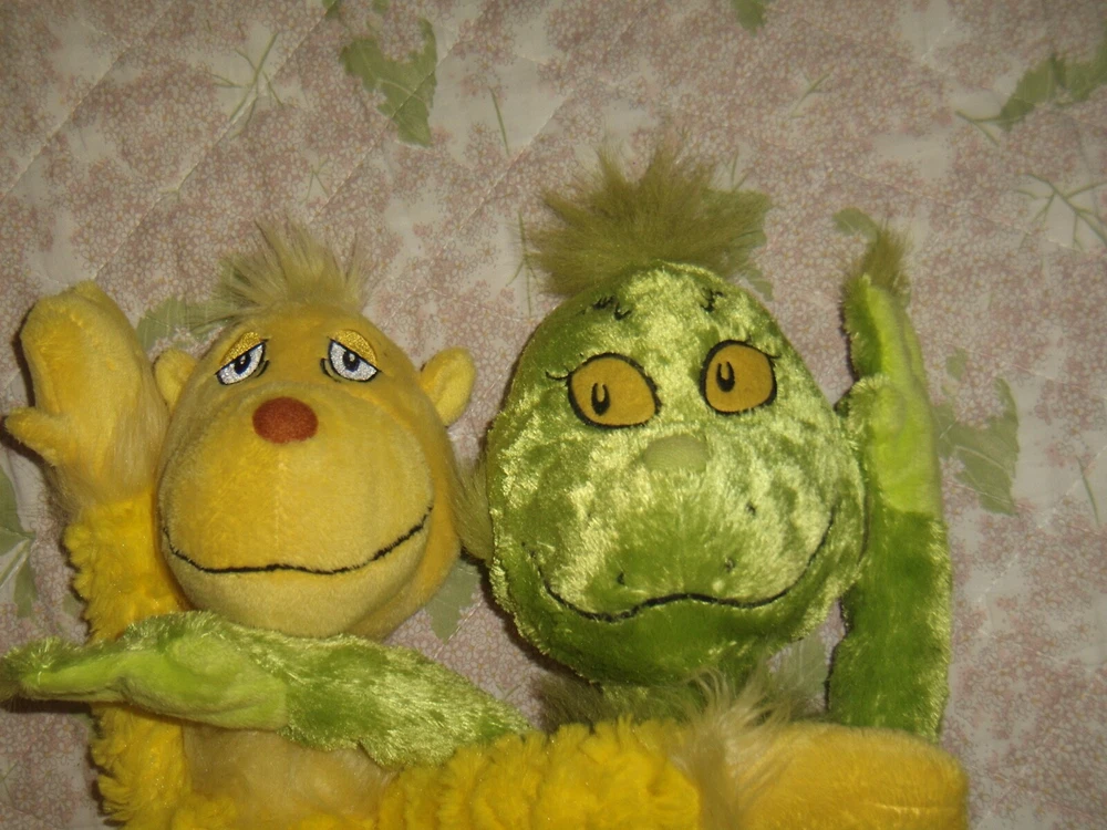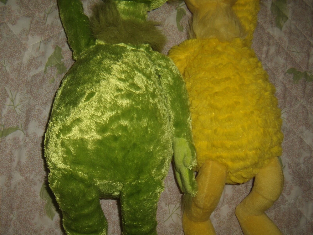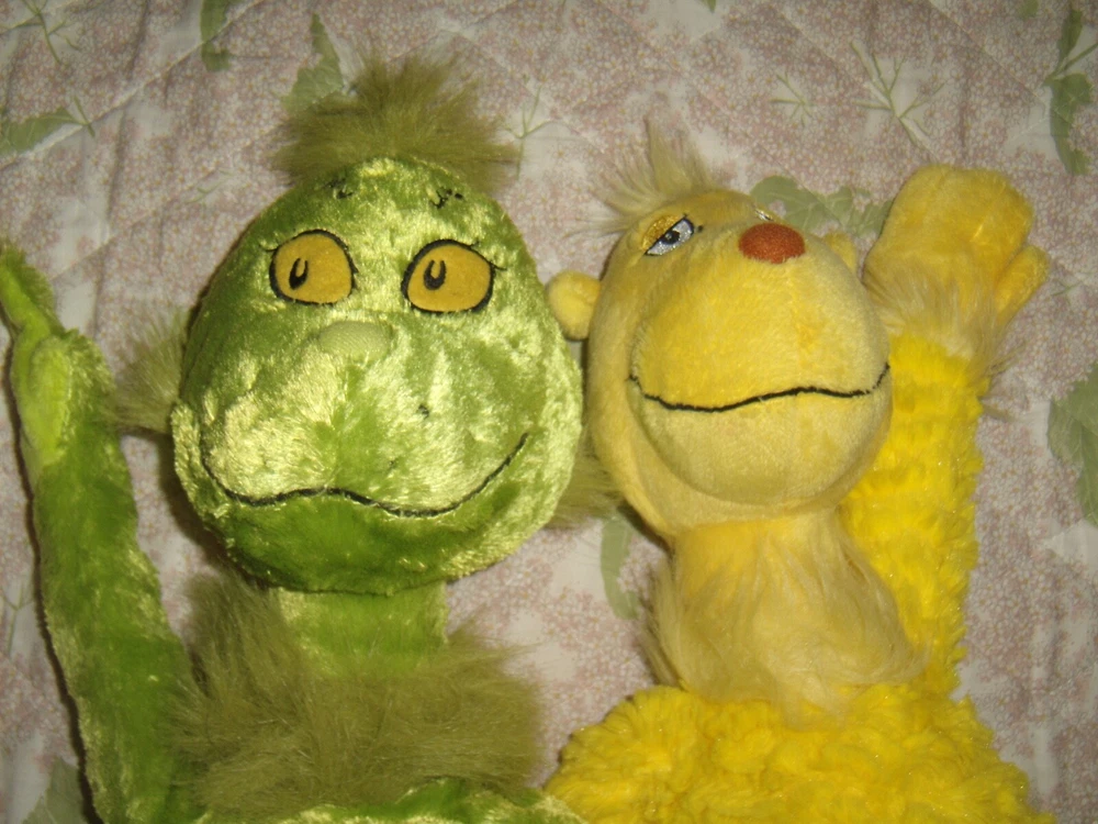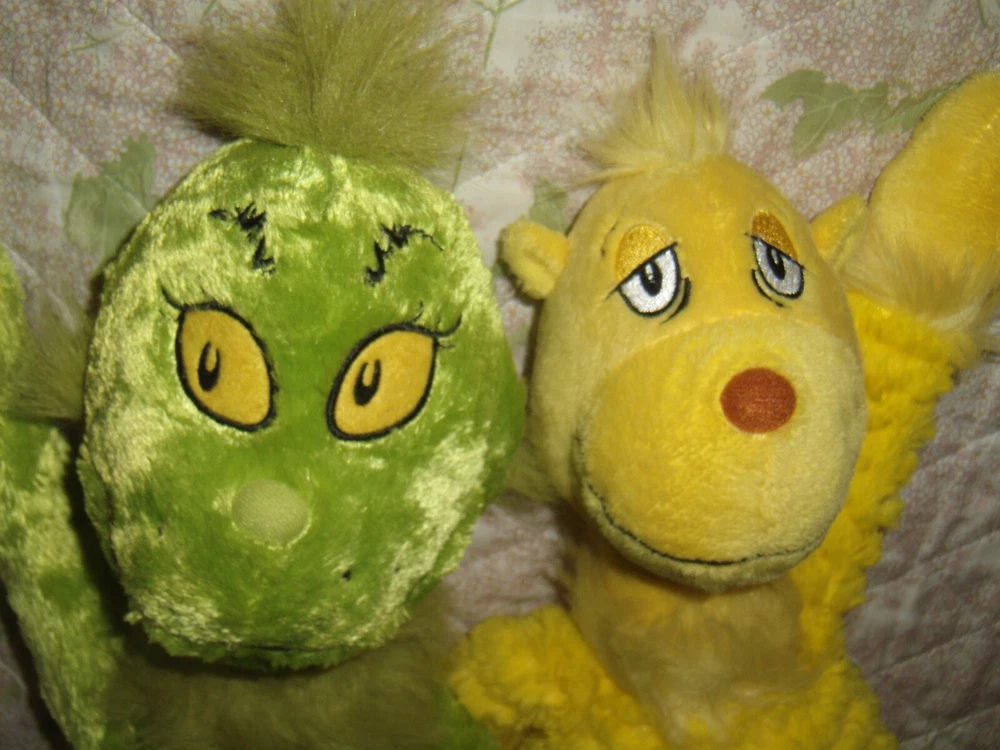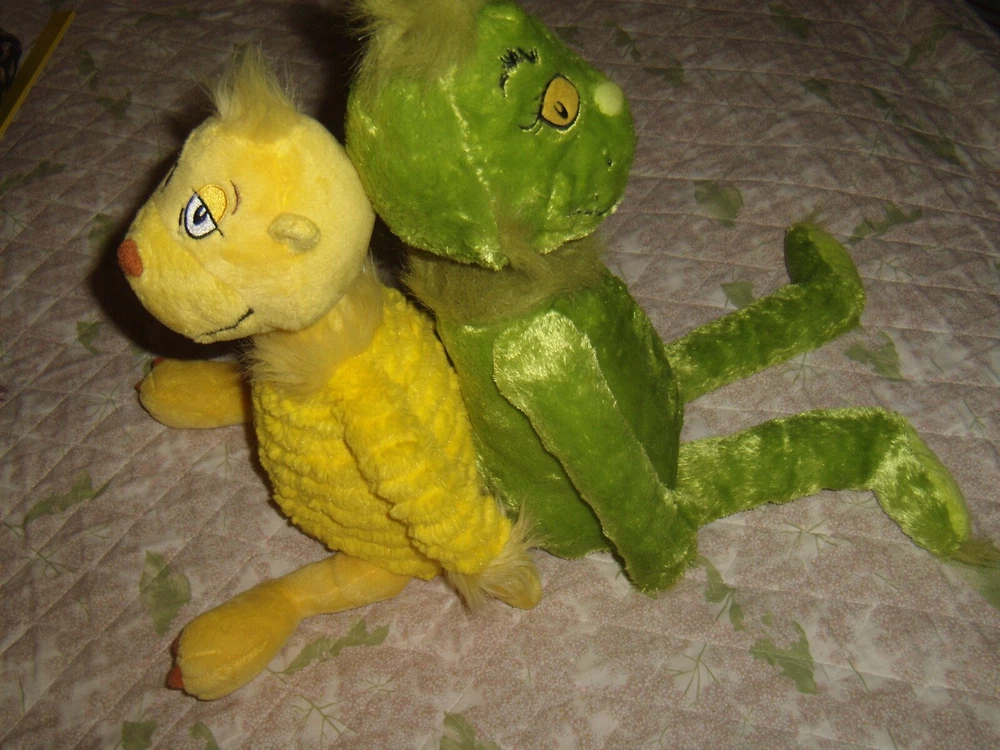 Dr Seuss's Famous The Grinch Who Stole Christmas and his Dr Seuss friend (from Sleep Book) Snoozapalooza Plush cuddly stuffed Classic characters, the Grinch measures 21 inches from tft on head to tip of toes & the Snoozapalooza measures 19 inches from tuft on head to tip of toes, Grinch dated 2010 and Snooze dated 12-02/2013 on ID labels attached (see photos), Both bright colored excellent like-new absolutely clean condition in a non smoker home. Please ask questions before bidding as no refund is offered. Will be carefully packed and shipped in USPS Priority Mail Flat Rate Box that includes insurance, tracking and quick delivery. Before Bidding...Send me your delivery zip code for an alternate shipping USPS cost.