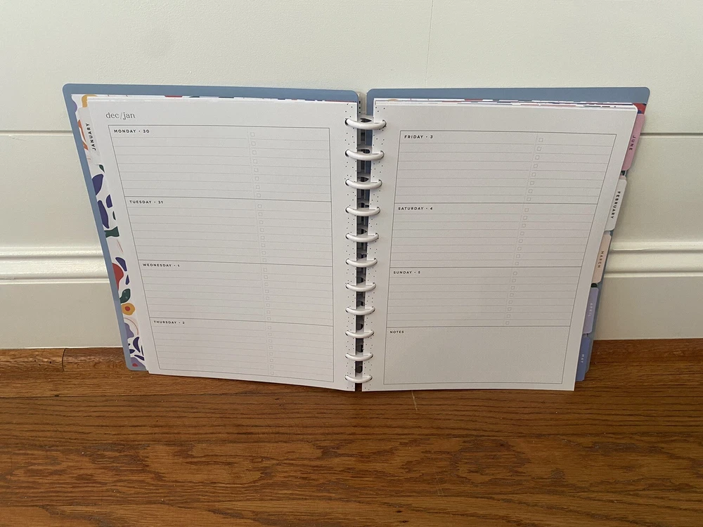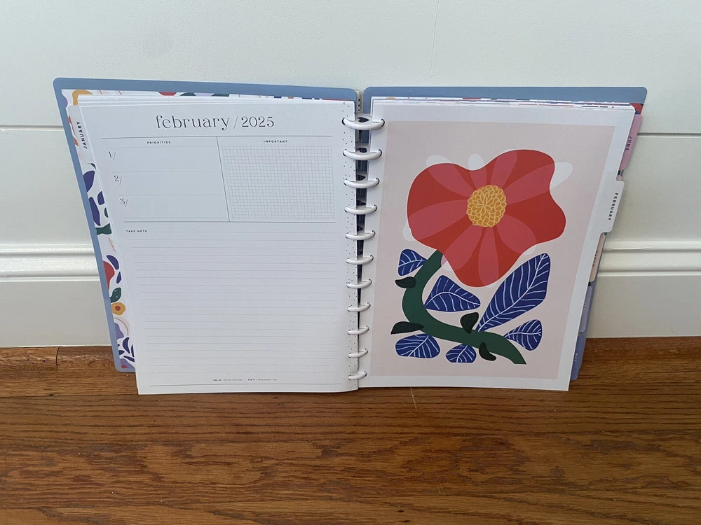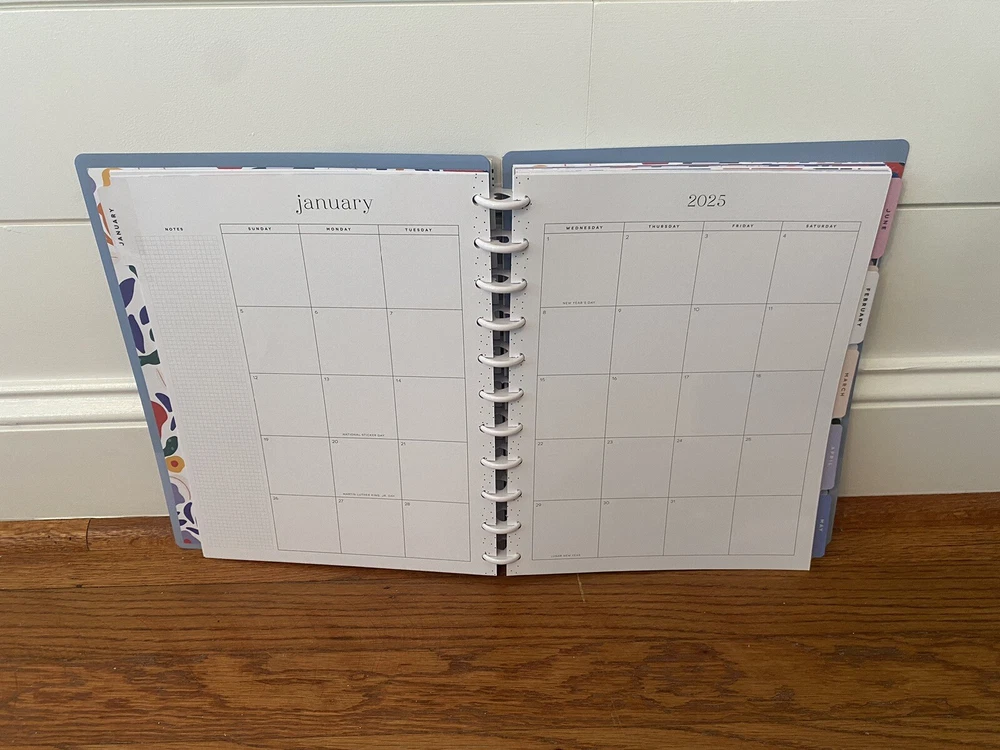 This listing is for The Happy Planner 2025 Weekly/monthly fashion planner. This planner runs from January 2025 through December 2025 and has a tabbed monthly outlook followed by a 2 page per week setup for the next 4 weeks of that month. The planner measures roughly 9”x12” and has a blue floral cover design. Feel free to ask any questions!!!