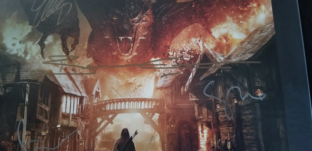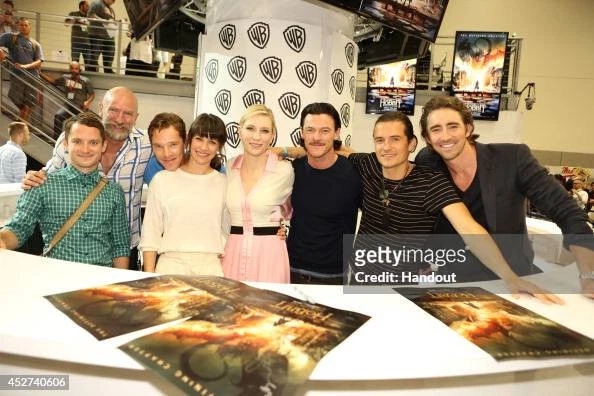 The Hobbit CAST SIGNED x9 POSTER SDCC COMIC Bloom Blanchett Cumberbatch Lilly ++. This poster was signed at San Diego Comic Con 2014 at the WB Booth. You had to win a wristband to attend the signing and that wristband will be included with the poster. It is signed by the following cast members Benedict Cumberbatch, Orlando Bloom, Cate Blanchett, Evangeline Lilly, Lee Pace, Luke Evans, Andy Serkis, Elijah Wood, and Graham McTavish. This poster is in very good condition. It is a 12x18 poster. Buyer to pay $10.00 post USA. Thanks for looking.