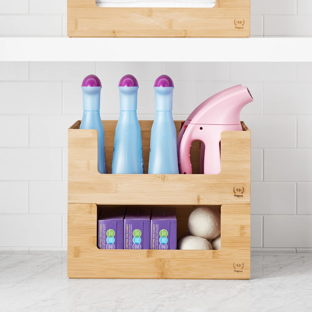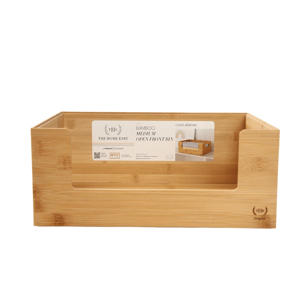 The Home Edit Bamboo Open Front medium 2-piece storage bins are perfect to help you kick off your next organizing adventure. The Home Edit Bamboo Open Front Medium Brown Storage Bins are perfect for organizing the Pantry, Home Office, Bathroom and More. Here at The Home Edit we believe that any space can function efficiently while looking beautiful with smart systems on your side. Great gift for Adults! Included are 2 medium size Bamboo Open Front bins (10.5" x 14.5" x 6") As seen on Netflix! Stackable Bin Mix and match with other The Home Edit Storage Solutions 2 open Front brown bins 10.5" x 14.5" x 6" Great for Kitchen, Pantry, Bathroom, Bedroom, and More! Adults, children, teenagers