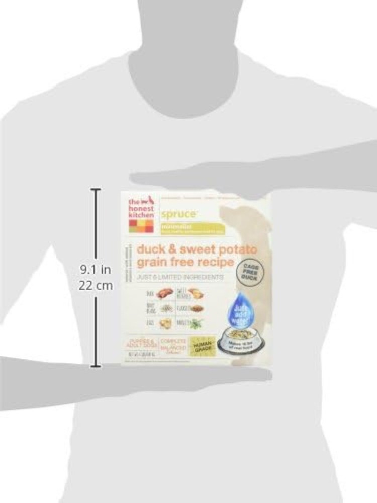 Flavor Name: Duck Size: 4 Pound (Pack of 1) Brand: The Honest Kitchen Flavor: Duck Age Range (Description): Adult Item Form: Dry Specific Uses For Product: Nutrition About this item MAKES 16 LBS OF FOOD: Just add warm water for a wholesome & delicious meal that rehydrates to 4x its weight. A 4 LB box makes 16 LBs of fresh food! Serve alone as a complete easy homemade meal, or use as a topper to dry food. EASY HOMEMADE MEALS FOR YOUR DOG: Transform our dehydrated food into a complete and balanced meal by simply adding warm water, perfect for busy pet parents wanting high-quality meals without hassle SUITABLE FOR ADULT & SENIOR DOGS: Complete & balanced nutrition for adult dogs of all breeds and sizes including adult and senior dogs. WE SAY NO TO: This recipe contains no preservatives, by-products, fillers, GMO ingredients, corn, wheat or soy. CERTIFIED B CORPORATION – We meet the highest standards of verified social and environmental performance, public transparency and legal accountability to have a positive impact on our employees, communities and the environment.