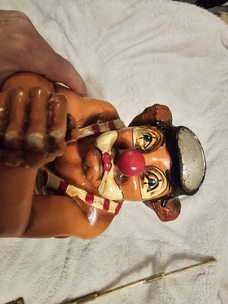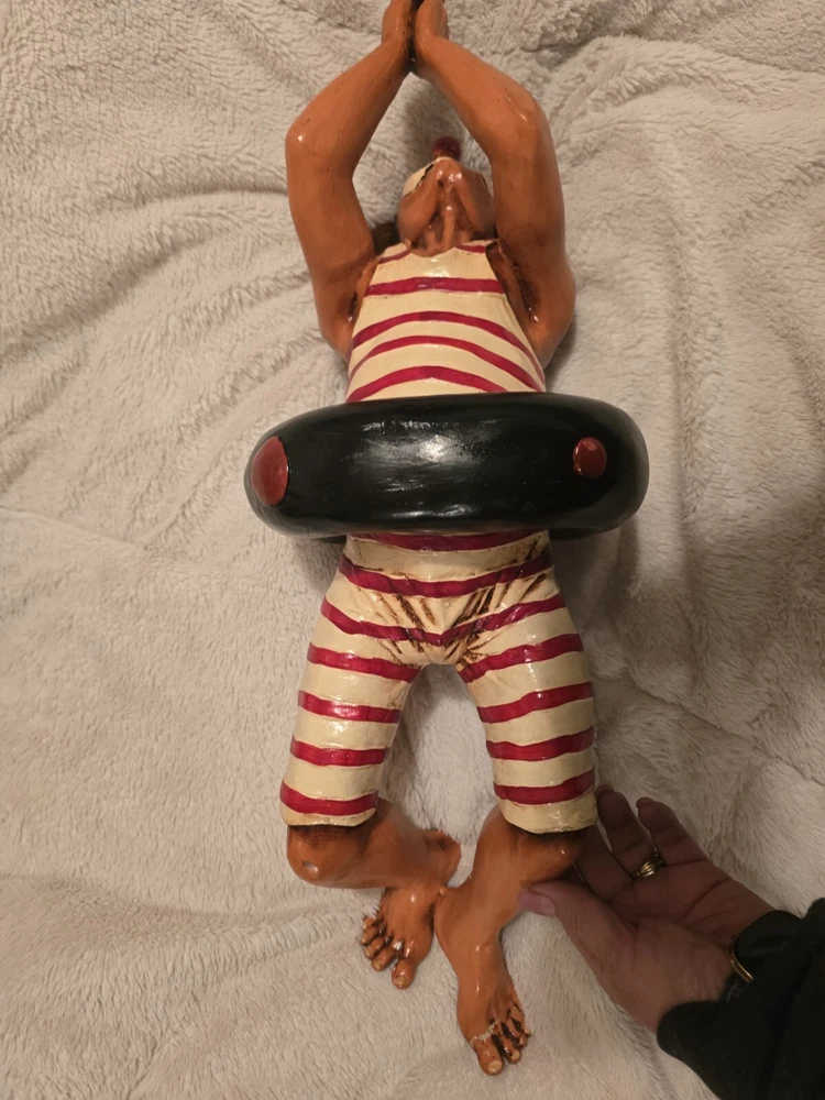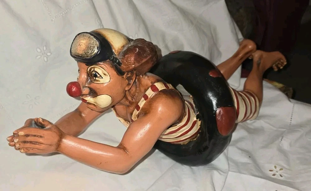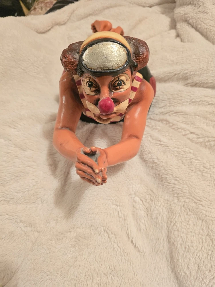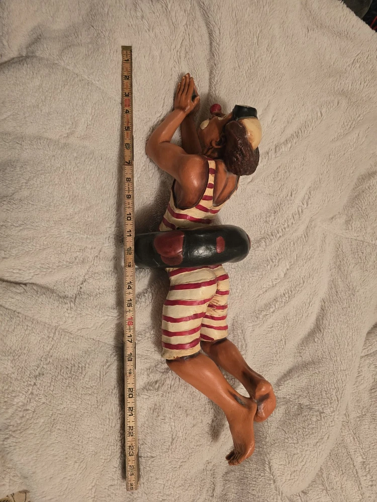 The Hoop Diver 24" Resin Clown Sculpture. See pics. Crack in shoulder and a foot has been mended.