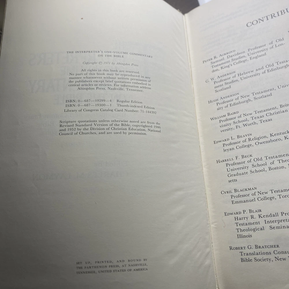 Edition: Collector's Edition Original Language: English Country/Region of Manufacture: United States Features: Illustrated, Unabridged gtin13: Does not apply Type: Short Stories Topic: Bible, Reference, Christianity Author: Charles Laymon Book Title: The Interpretees One Volume Commentary ISBN: Does not apply Language: English Signed: No Publisher: Abingdon Book Series: Historical Intended Audience: Young Adults, Adults Genre: Religious & Spiritual, Spirituality, History Publication Year: 1971 Format: Hardcover Narrative Type: Nonfiction