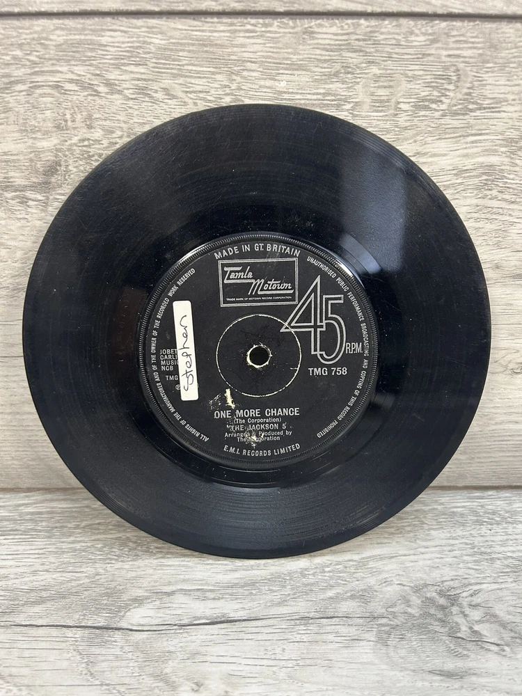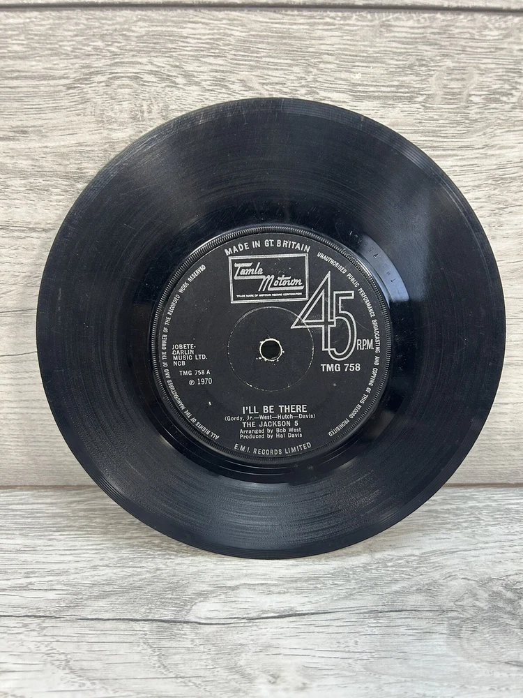 Artist:The Jackson 5Genre:R&B & SoulRelease Year:1970Style:SoulMaterial:VinylRecord Label:Tamla MotownSpeed:45 RPMRecord Size:7"Record Grading:Very Good (VG)Case Type:Paper SleeveEAN:Does not applyType:SingleFormat:RecordRelease Title:I’ll Be There / One More ChanceColour:Blackgtin13:Does not apply