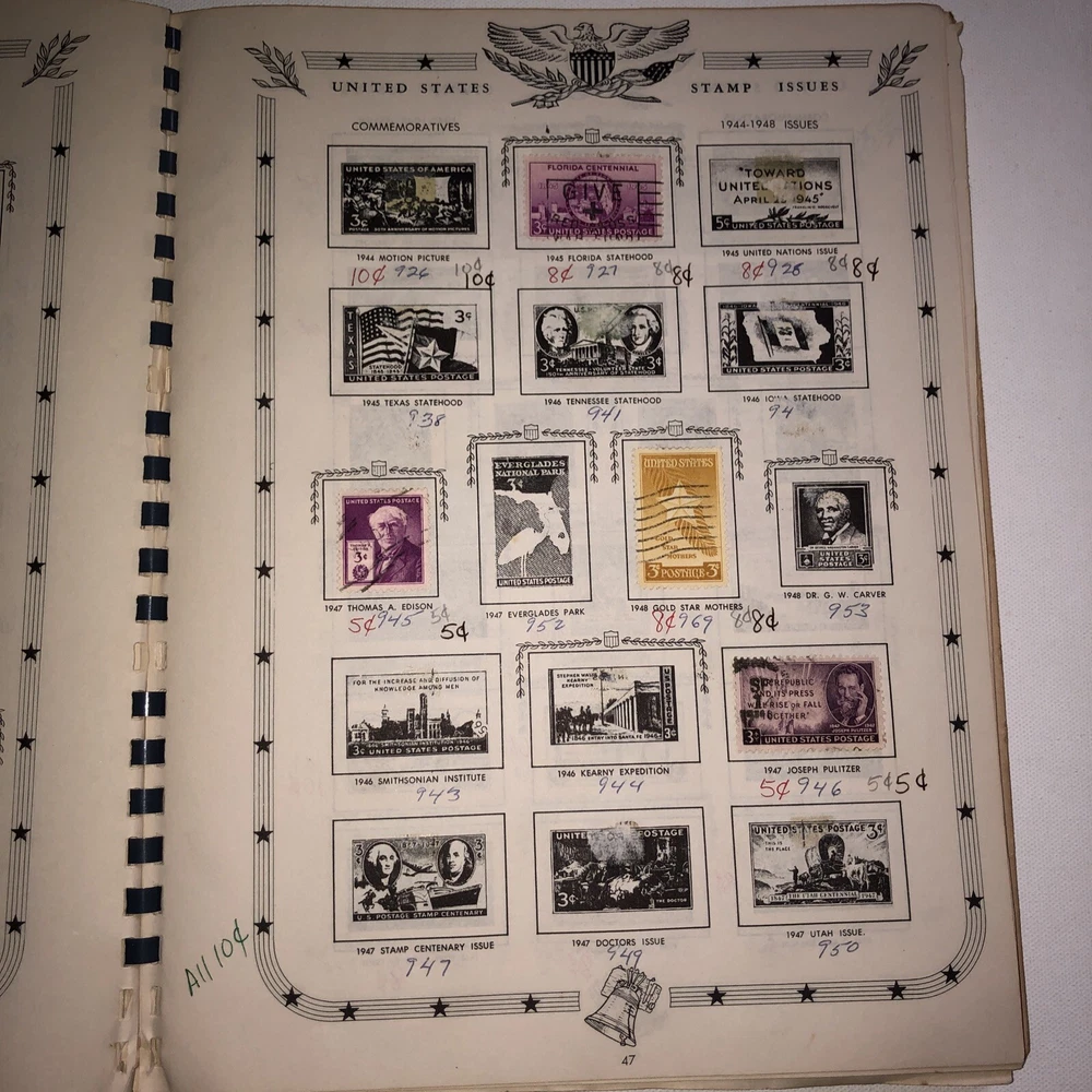 This great item belonged to my father who was 13 years old back in 1961 when he received this item and starting collecting stamps. He wrote his name on the back cover. This Jefferson United States Stamp Album from 1961 Edition is a must-have for any stamp collector. The album contains a variety of stamps that were manufactured in the United States. The quality of the stamps is used and they are ungraded. The album is uncertified and is a great addition to any collection. The album is perfect for collectors who are interested in United States stamps from the 1901-Now era. It is a great way to add to your collection and organize your stamps. The album was manufactured in the United States and is a piece of history that any collector would be proud to own.