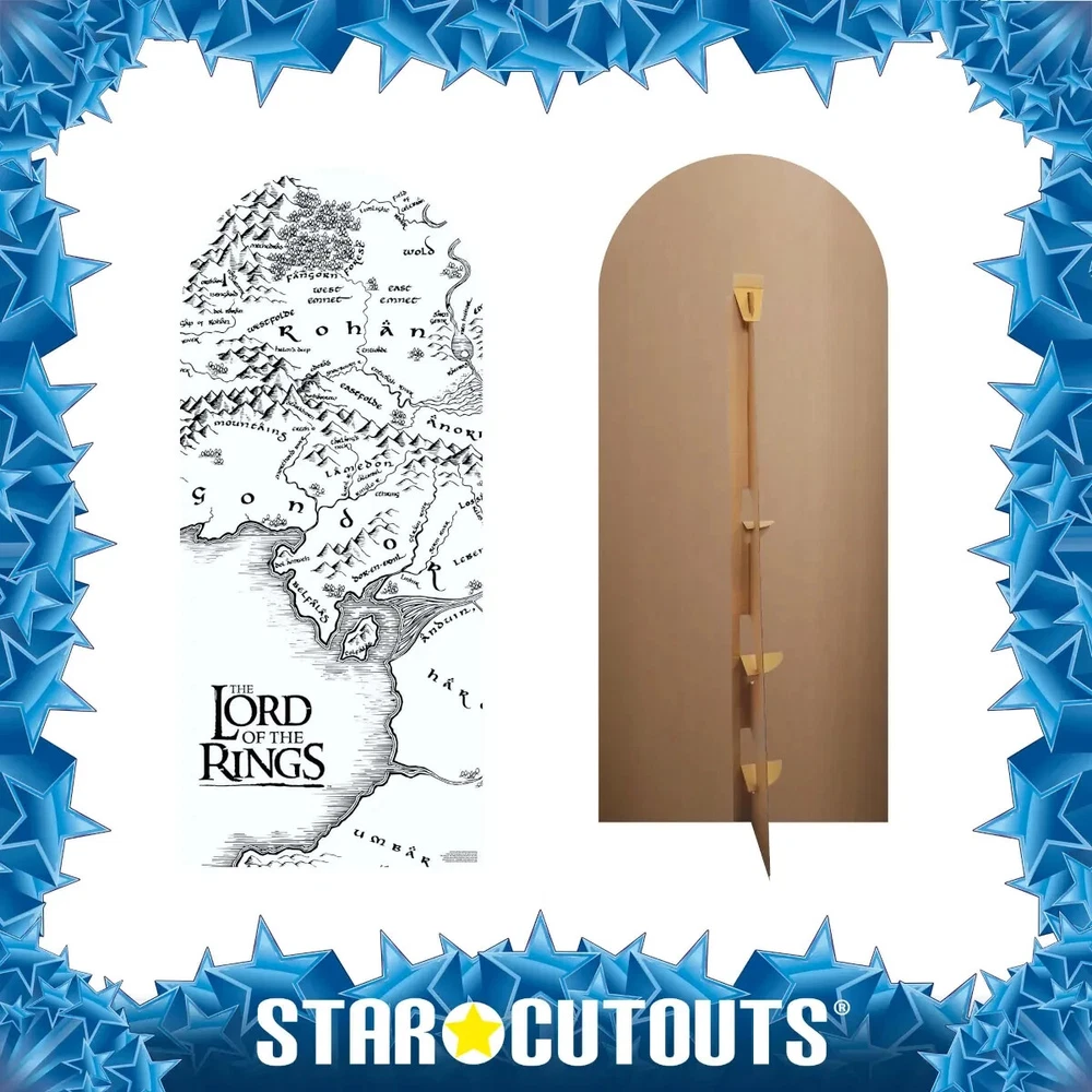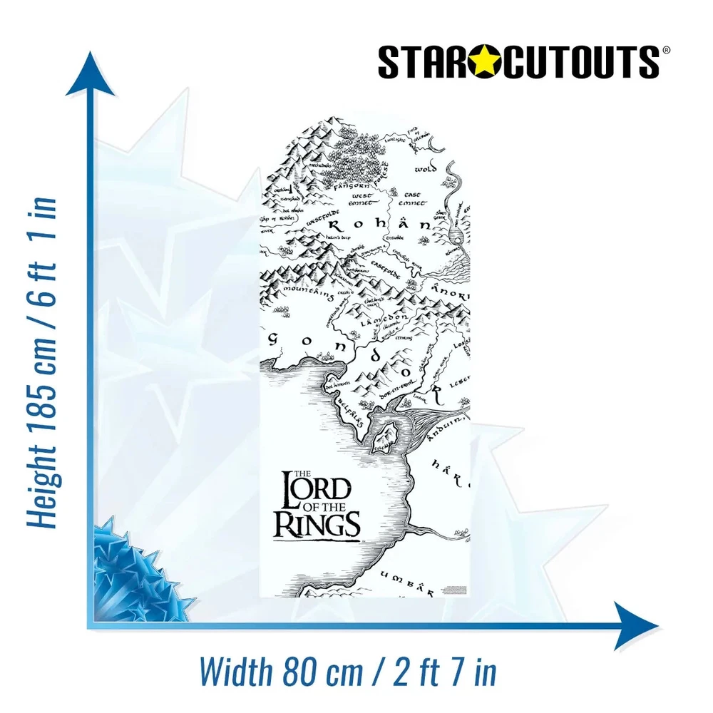Step into the epic world of Middle-earth with this stunning Lord of the Rings Black & White Map backdrop cardboard cutout! Perfect for fans of J.R.R. Tolkien’s legendary trilogy, this official standee is a captivating decorative piece that brings the rich lore of Middle-earth to life. Key Features: Dimensions: Measures approximately 80 cm wide and 185 cm tall, making it a perfect statement piece or backdrop for events. Design: Features a beautifully detailed black-and-white map of Middle-earth, including iconic locations such as Mordor, Rivendell, the Shire, and Helm’s Deep, styled in an elegant monochrome aesthetic. Material: Crafted from high-quality, durable cardboard with a smooth, matte finish that enhances the intricate details of the map. Easy Setup: Comes with a built-in easel stand for stable and secure display, making it simple to assemble without additional tools. Officially Licensed: An authentic product designed with attention to detail, capturing the essence of Tolkien’s world as depicted in The Lord of the Rings trilogy. Versatile Use: Ideal as a backdrop for themed parties, cosplay events, gaming sessions, or as a decorative piece in a home, library, or study. Immersive Experience: Perfect for creating an immersive atmosphere for fans of the series, whether for storytelling, photography, or adding to your collection. Lightweight and Portable: Easy to move and store, making it convenient for repeated use or display in different locations. Durable: Designed for long-lasting enjoyment, ensuring the map remains a centerpiece for years to come. Perfect for: Lord of the Rings themed parties, events, or cosplay photoshoots. Adding a sophisticated touch to a fan’s home décor, office, or library. Displaying at conventions, bookstores, or movie screenings to captivate Tolkien enthusiasts. Enhancing board game nights, particularly for games set in the world of Middle-earth. This Lord of the Rings Black & White Map Official Single Backdrop Cardboard Cutout is a must-have for fans and collectors, offering a timeless tribute to Tolkien’s epic saga and the legendary lands of Middle-earth. Product Details: Dimensions: Height 185cm x Width 80cm Official Licensed Product Looks Amazing Alone or When With Other Cutouts in the Range Simply Pop Out, Unfold Easel & Erect Folds Away For Easy Storage & Delivery