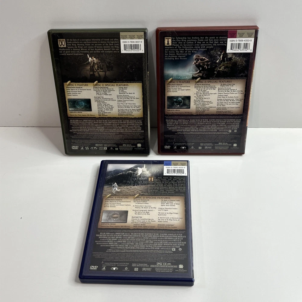 The Lord of the Rings Trilogy Lot of 3 DVD 2-Disc Collection Widescreen. Light wear to cases with all discs in very good condition. Shipped USPS media mail.