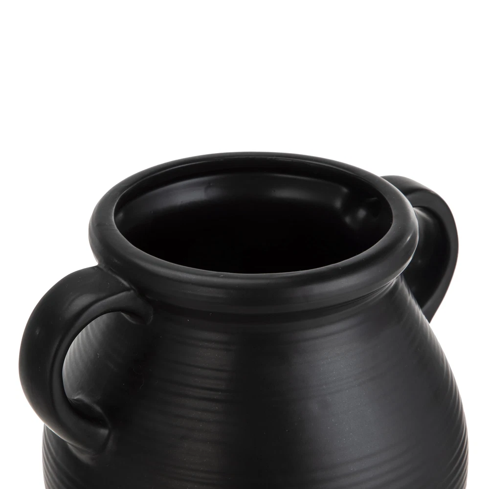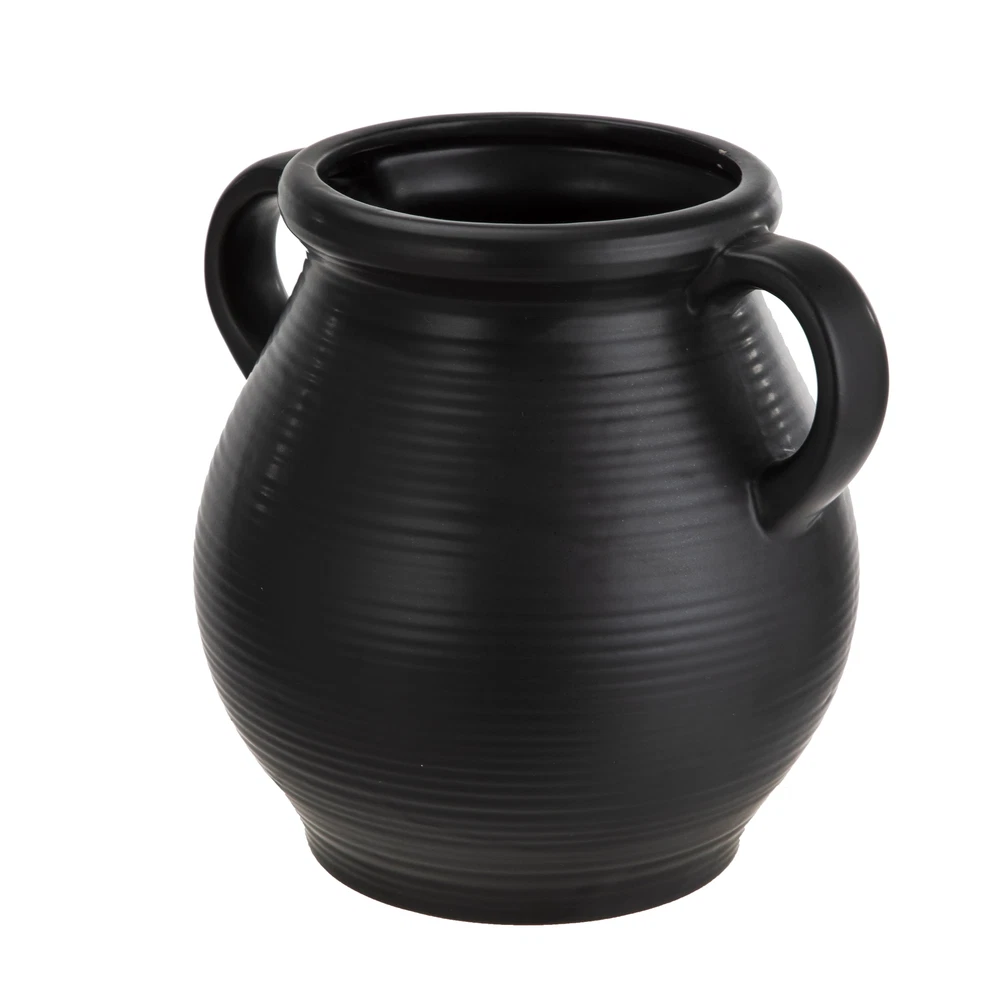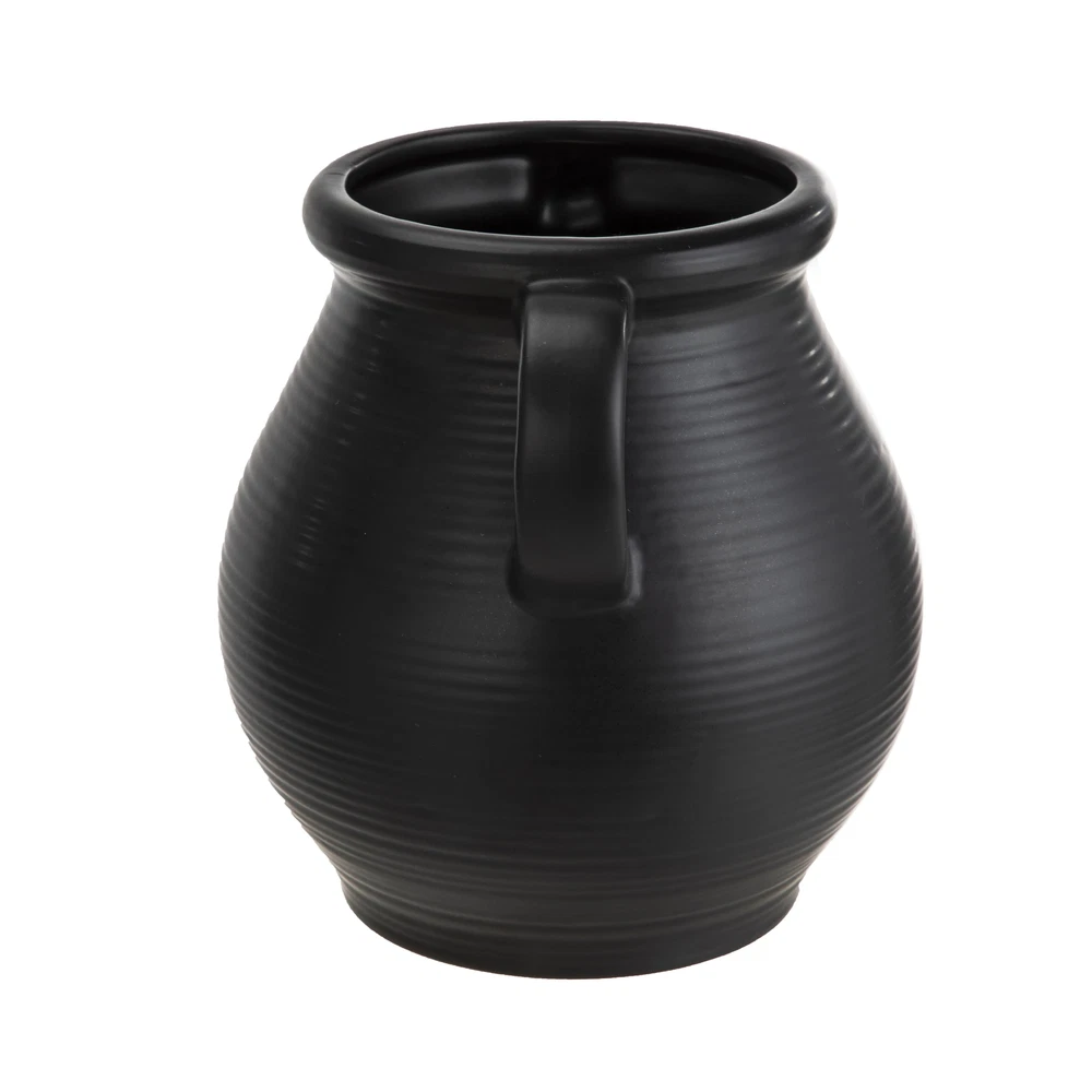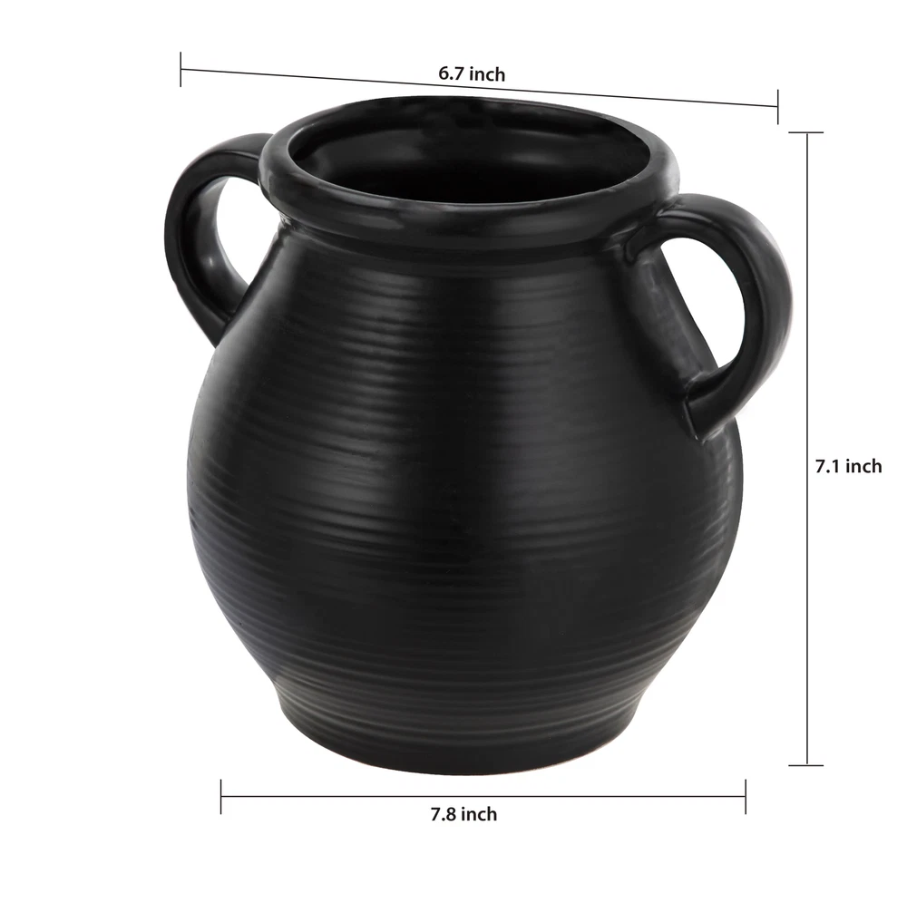 The Mainstays Black Ceramic Vase With Ribbed Finish is a timeless piece that you're sure to love. The versatile design allows you to use this as a vase or table décor. This item may be used in so many ways including holding fresh or artificial flowers, kitchen or office supplies, knitting tools, or candy to name a few. Two handles not only add detail, but also allow for easy carrying. This item was designed with longevity and class in mind. The classic, antique-inspired design pairs well with a variety of home décor styles especially classic, transitional, traditional, farmhouse, rustic and vintage. Wow your guest with this item before it's sold out! The Mainstays Black Ceramic Vase With Ribbed Finish Classic, black color Two handles not only add detail, but allow for easy carrying as well Dimensions: Measures 7.83" x 7.09" x 6.65" Lightweight Weight: 2.05 Ibs. Classic/antique inspired design pairs well with a variety of home décor styles especially classic, transitional, traditional, farmhouse, rustic and vintage Versatile design allows you to use this as a vase or table décor Created with longevity in mind Made of 100% ceramic Use with real or artificial floral Use to store many different item Unisex
