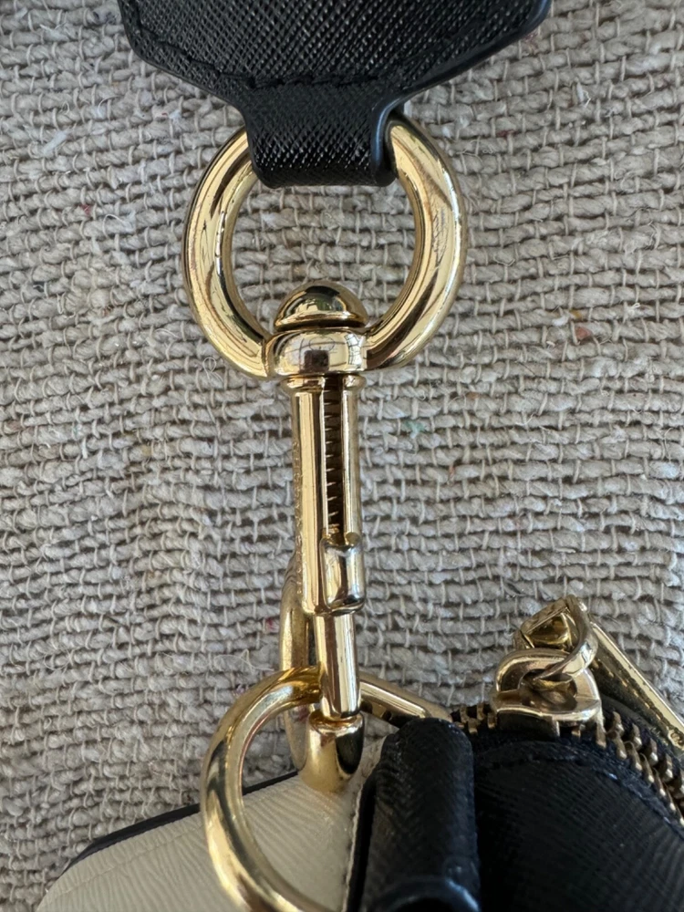 This Marc Jacobs Snap Shot Crossbody Bag OS is a stylish and functional accessory for women. It features an ivory and black leather exterior and a crossbody strap for easy and comfortable wear. The bag is perfect for everyday use and can easily fit all your essentials. The brand name Marc Jacobs speaks for itself in terms of quality and style, and this bag is no exception. It is perfect for any occasion and will elevate any outfit. Whether you're running errands or going out for a night on the town, this bag is the perfect choice. This bag is preowned, in excellent condition, the only sign that it has been used are some scuffing on the front gold J's. see picture