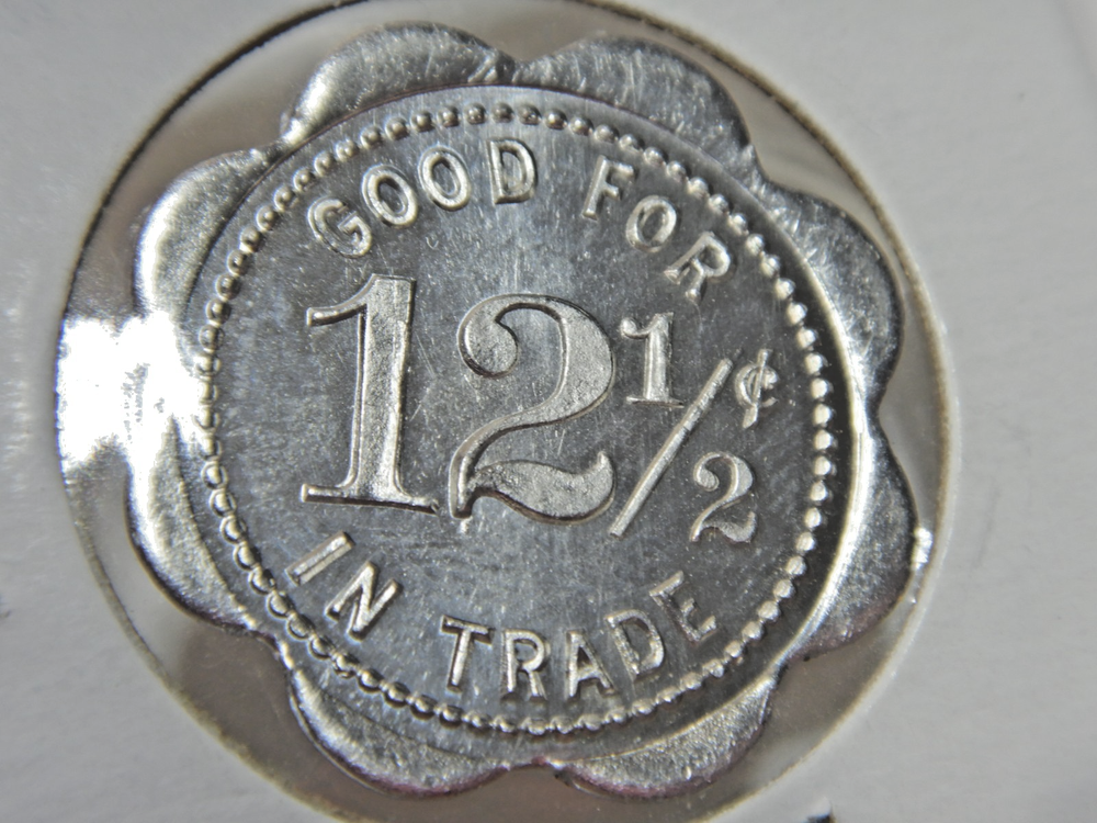 Item for sale is a 12 1/2 cent Trade token from Kodiak Alaska. This one is in very good condition. It is a harder token to come by. This is a high grade token, it may have never even been used. Very hard to find token.