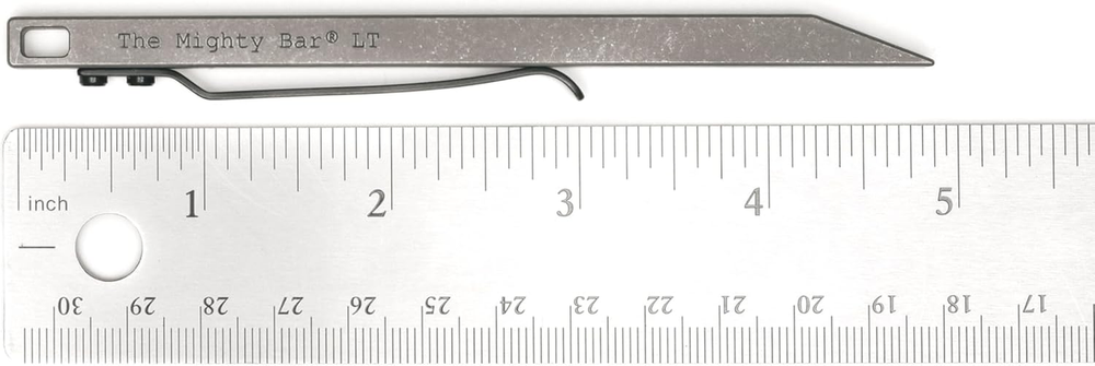 The Mighty Bar LT Long Titanium Edition Pry Bar Tool Stainless Steel Pocket Clip BUILT FOR LIFE: Premium titanium construction offers exceptional strength-to-weight ratio for demanding pry bar applications MINIMALIST DESIGN: Long-format pocket pry bar ideal for leveraging, lifting, and separating tasks in everyday life ERGONOMIC: Thoughtful design provides secure control and comfortable handling during extended use NON : Carefully engineered working end delivers optimal leverage PORTABLE SOLUTION: Stiff Stainless steel clip offers ultra secure carry in the pocket or on your gear Product description Save your edge. Save Your keys. Save Your nails... even Your teeth Crafted from ultra-durable titanium, the Mighty Bar LT is a convenient and long-lasting pry bar tool designed for everyday use. Its slim profile and stainless steel pocket clip make it easy to carry, while its ergonomic design ensures comfortable handling during extended tasks. The Mighty Bar LT, Long Titanium Edition Pry Bar Tool The Mighty Bar LT offers exceptional strength and portability. At 4.9 inches long, it's the perfect balance of leverage and everyday carry. Fitted with a rugged stainless steel pocket clip, it stays secure and ready for prying, lifting, opening boxes, and scraping tasks. Item model number MBLT1 Part Number MBLT1 Batteries Required? No Item Package Quantity 1 Material titanium Item Weight 0.634 ounces Batteries Included? No Package Dimensions 4.65 x 1.3 x 0.31 inches Complimentary Shipping and Easy Returns Need to return something? Enjoy our 30-day hassle-free return policy! Take advantage of free shipping across all 48 contiguous states! Your order will be dispatched within 1-2 business days once payment is confirmed. Your Opinion Matters! Your happiness is our main goal! We welcome your feedback! If you encounter any problems, reach out to us right away, and we’ll be here to help. Explore the Extraordinary! Our collection showcases fascinating products that are sure to capture your attention. What surprises await you? Delve in and discover unique items that enrich your daily life. Don't miss the amazing things we have in store for you!