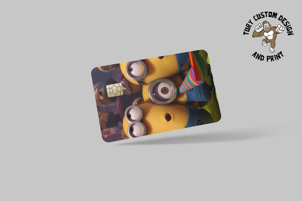 The Minions , 2 pc credit card skin & DEBIT CARD,TROLLEY & GYM,STICKER