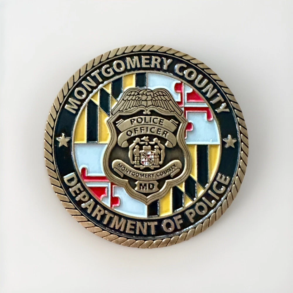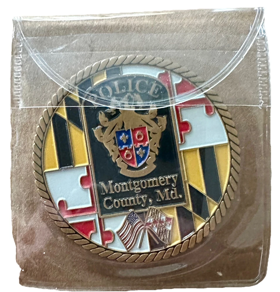 This challenge coin is a must-have for collectors of militaria and law enforcement memorabilia. The design features the logo of the Montgomery County Police Department and is an original piece, perfect for those who appreciate the history and tradition of police work. Whether you're a veteran or simply a collector, this challenge coin is a valuable addition to your collection. The coin is a great way to show your support for the Montgomery County Police Department and the brave men and women who serve our community. It is made from high-quality materials and is an original, one-of-a-kind piece. Don't miss out on the opportunity to own this unique and valuable challenge coin.