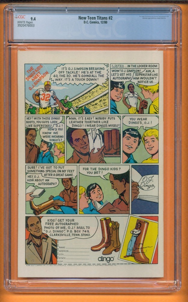 The product is a vintage comic book from 1980, specifically The New Teen Titans #2, featuring the debut of the character Deathstroke. This comic book is a newsstand variant in English, part of the US Comics tradition, and graded at 9.4 Near Mint by Certified Guaranty Company (CGC). It is a single issue from the Bronze Age era, with a colorful style and belonging to the DC Universe. With a striking cover by George Perez, this comic book is a valuable collectible for fans of superhero teams like the Teen Titans.
